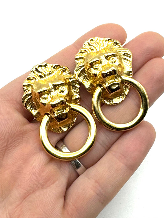 Vintage Kenneth Jay Lane Lionhead Door Knocker Earrings