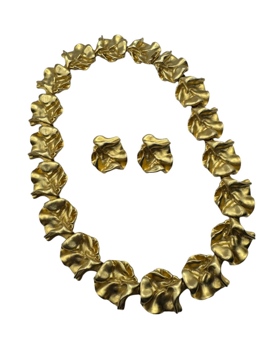 Vintage Les Bernard VO Runway "Ruffles" Necklace and Clipon Earring Set 1980s