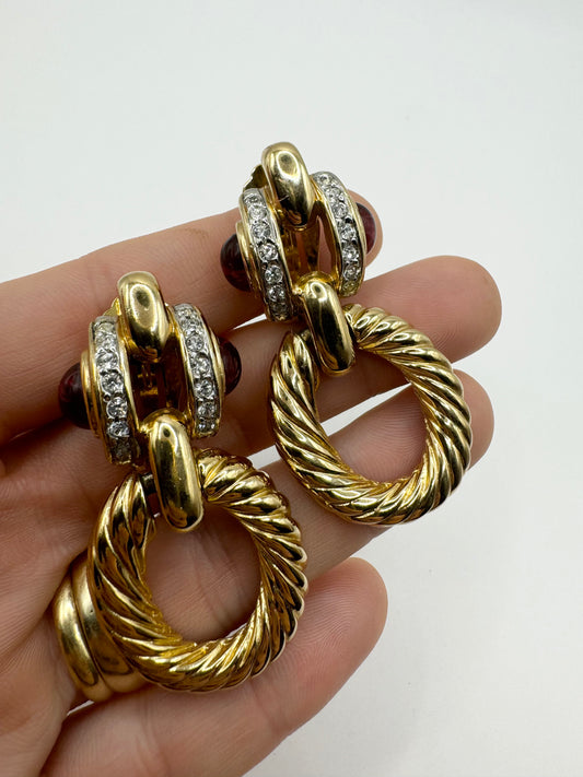 Vintage Mogul Glass Rhinestone Twisted Rope Door Knocker Clipon Earrings