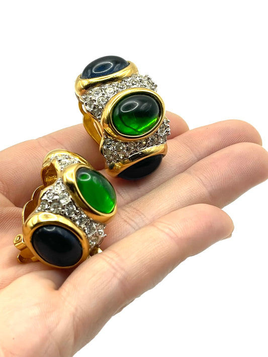 Vintage Nina Ricci Chunky Cabachon & Rhinestone Clip Earrings
