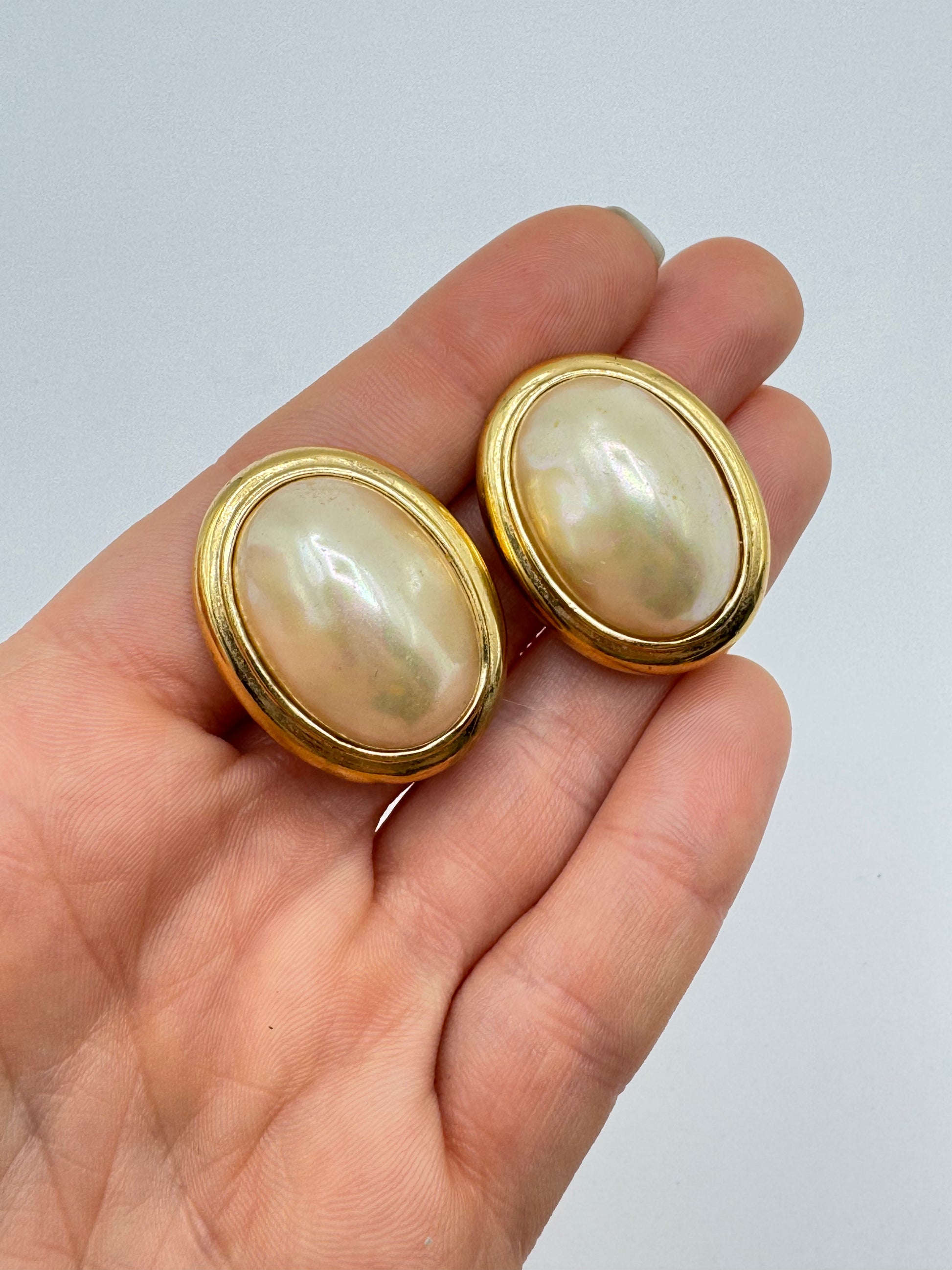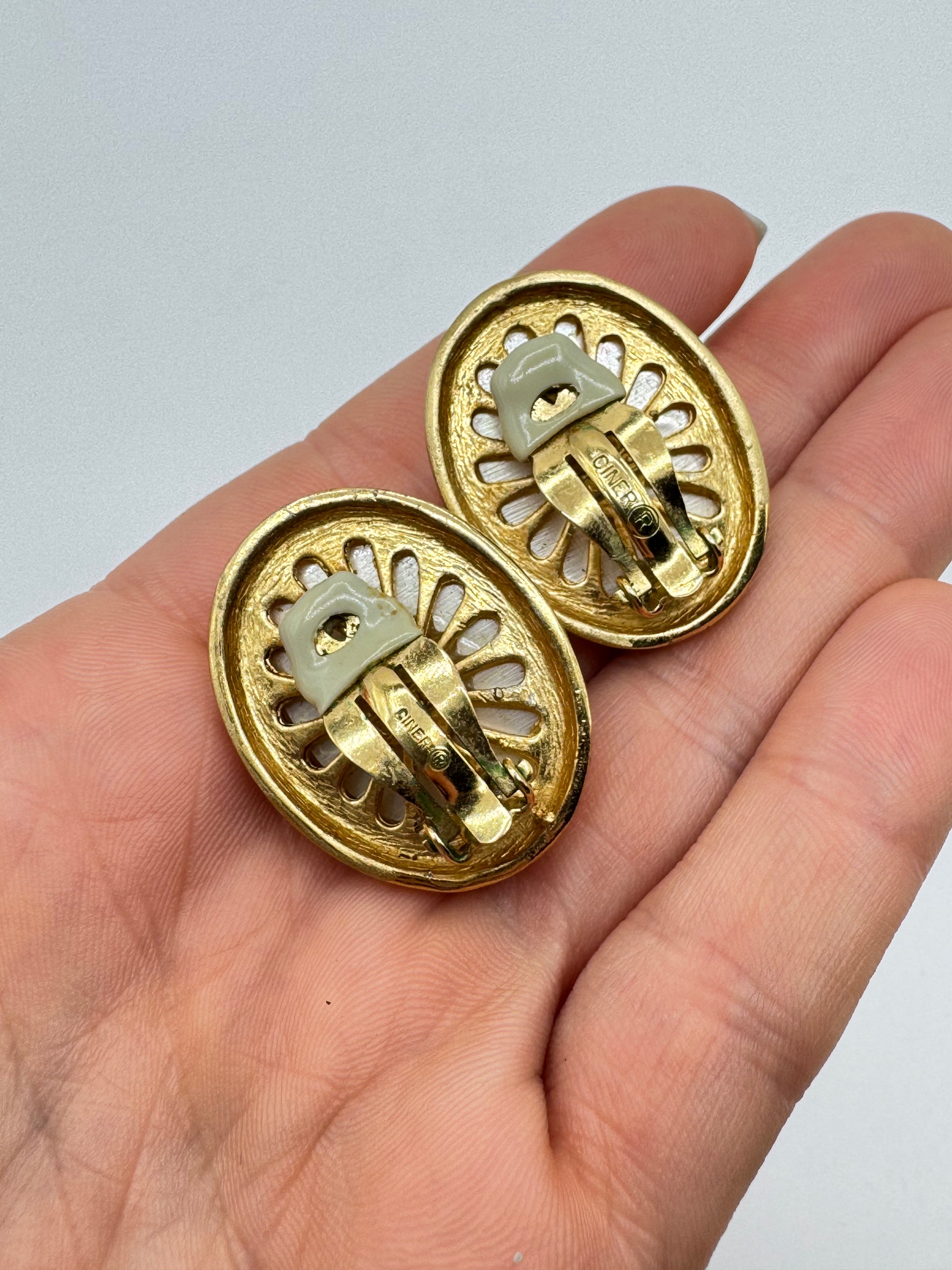 These earrings exemplify Ciner’s timeless sophistication—a brand known for combining high-end costume jewelry with couture-level craftsmanship. The creamy, luminous faux pearls bring a soft glow, while the clean oval silhouette offers a versatile, wearable statement.