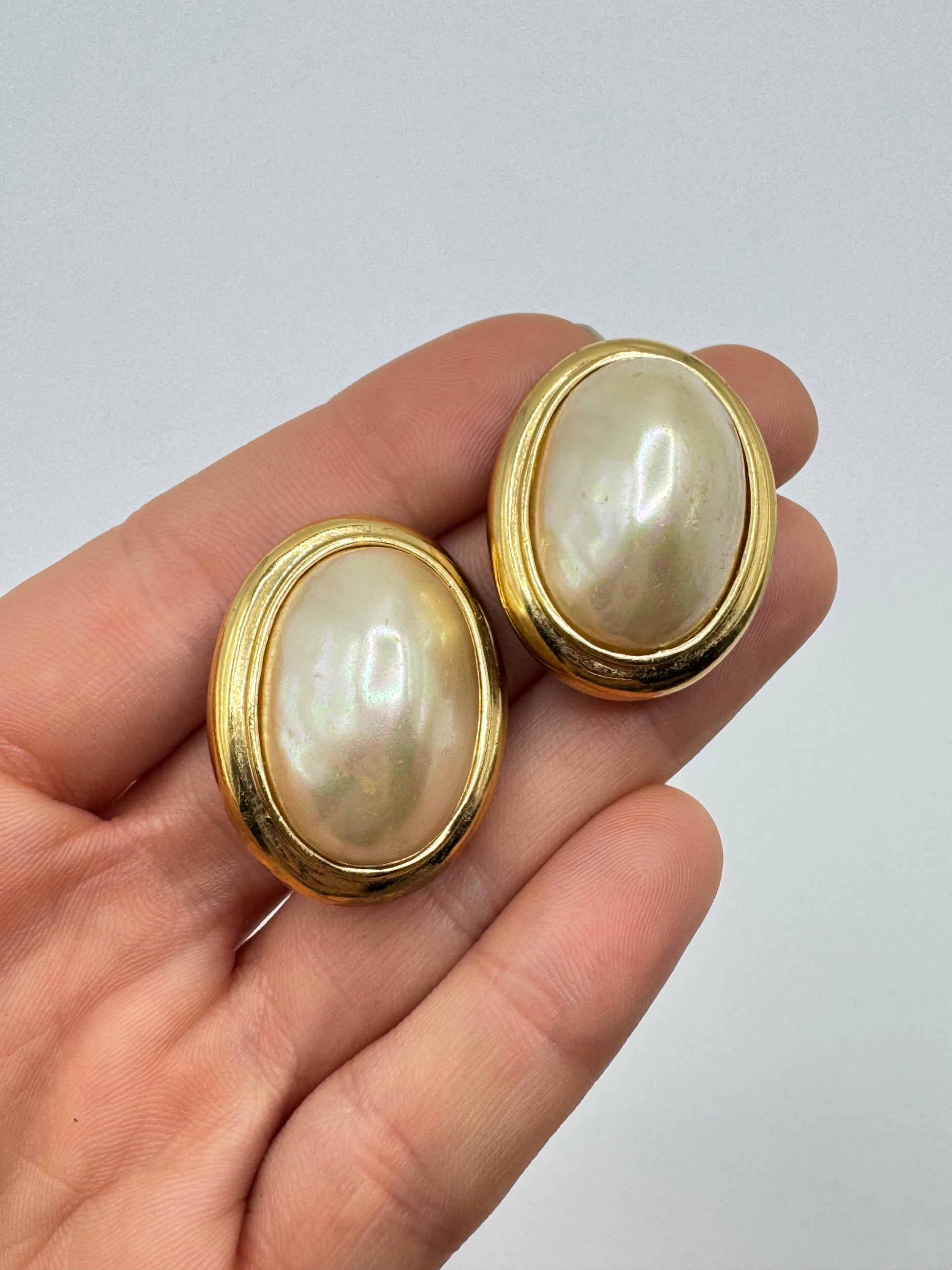 Vintage Ciner Clip-On Earrings with Faux Pearl Cabochons