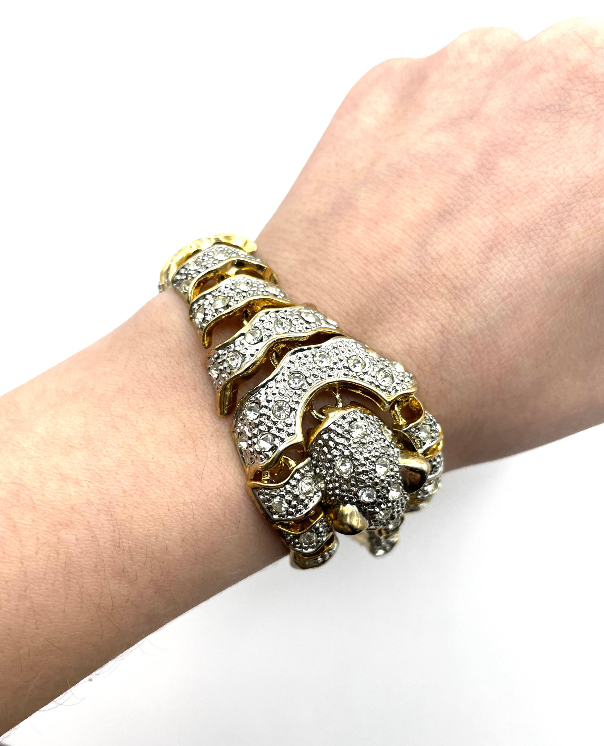 Vintage Gold Plated Articulated Rhinestone Panther Bracelet