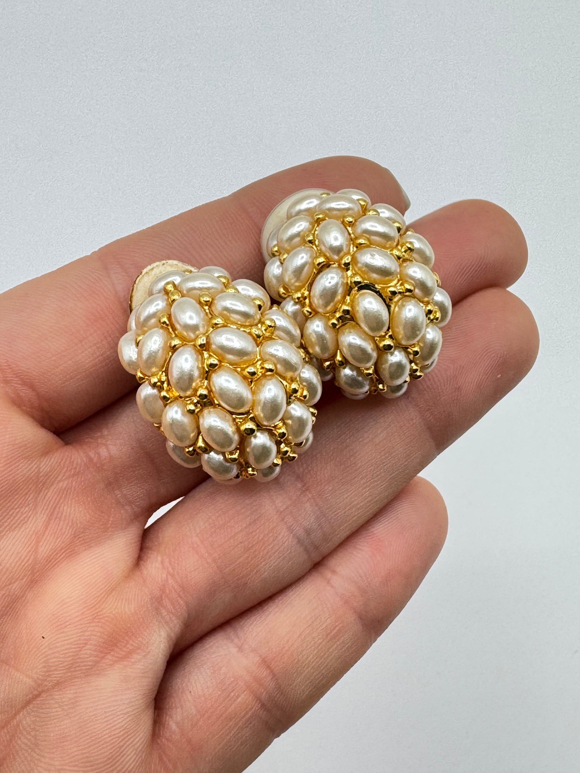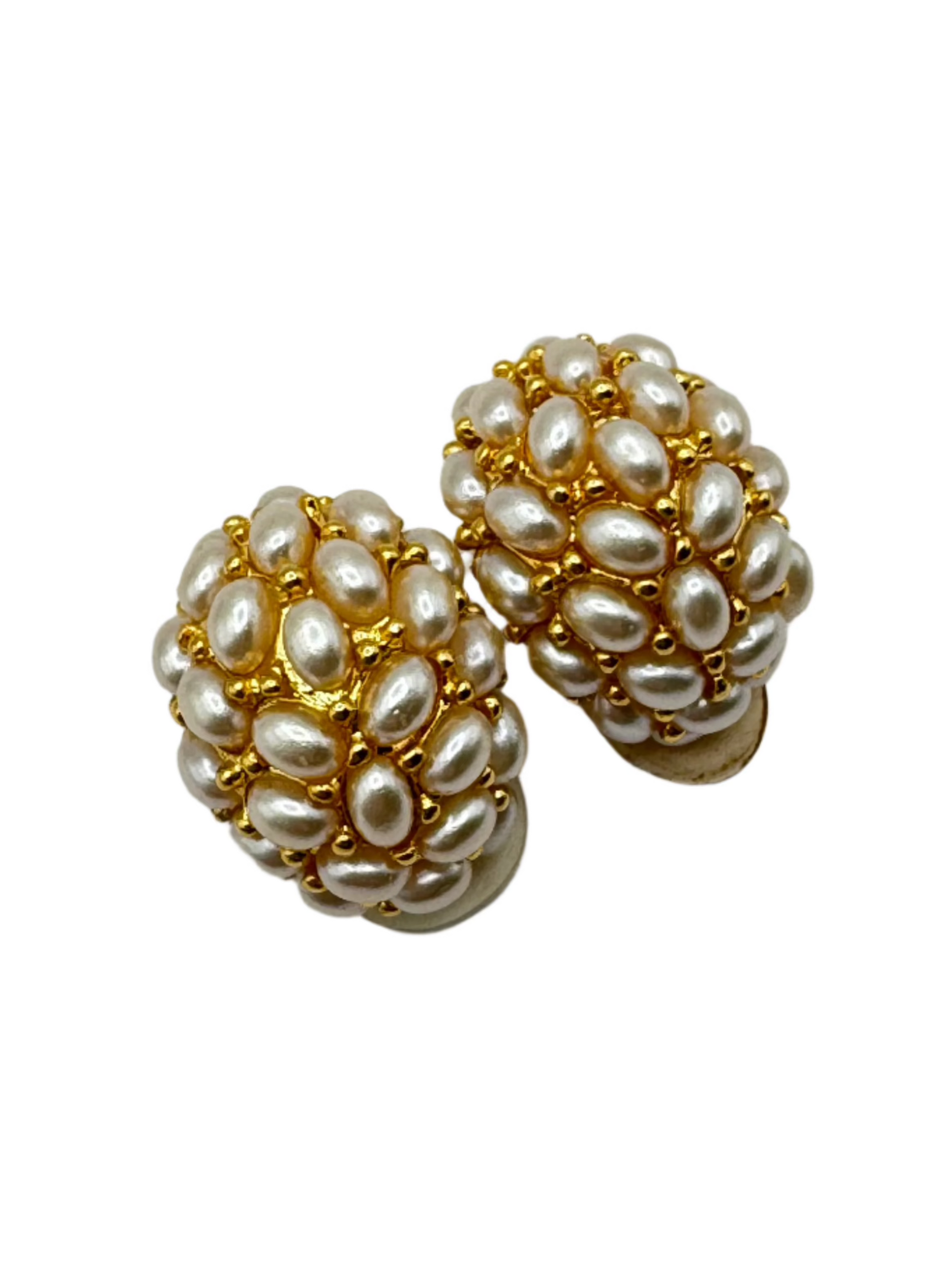 Vintage Kenneth Lane Cluster Clip-On Earrings with Faux Pearls