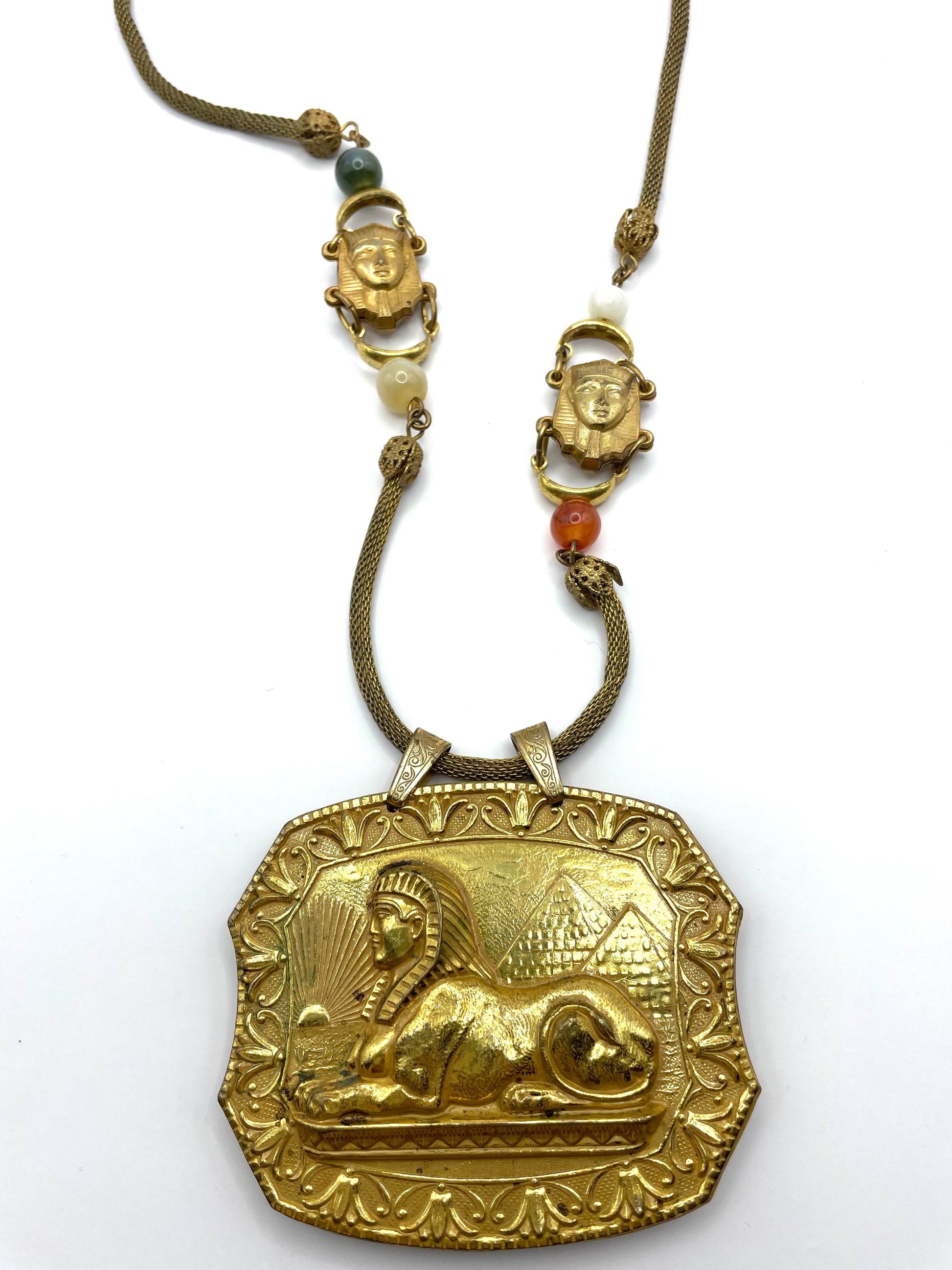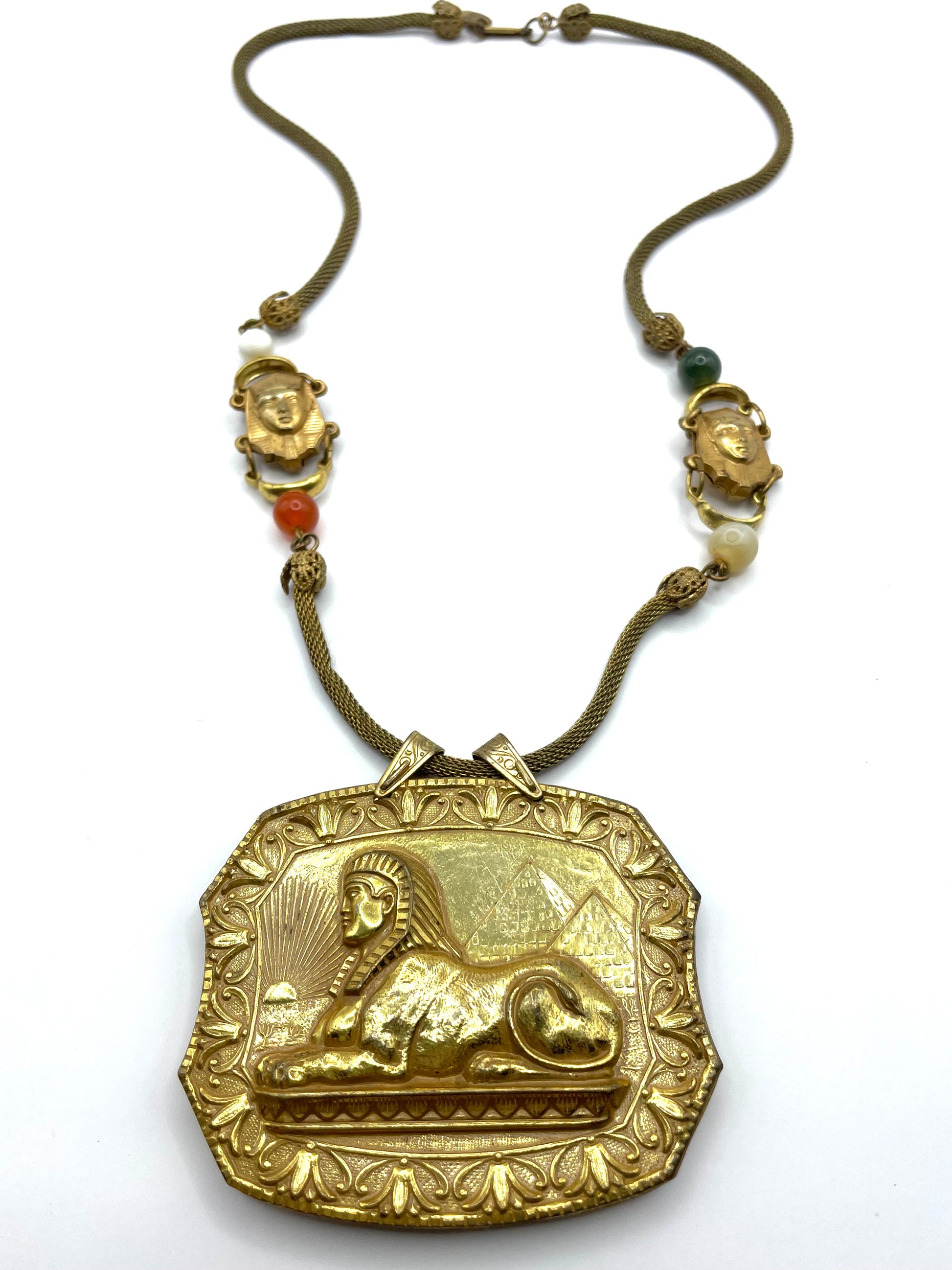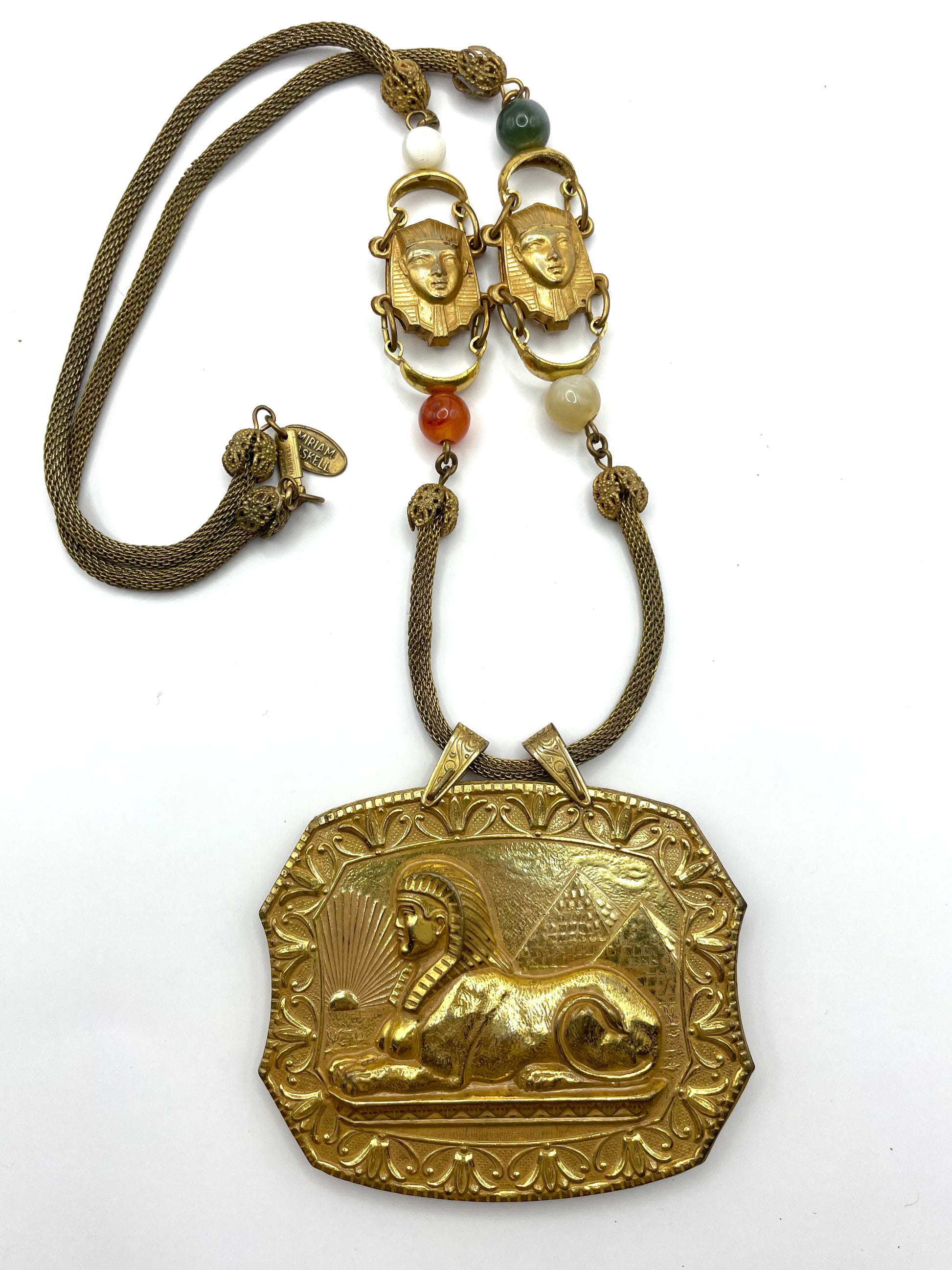 Miriam Haskell Egyptian Revival Sphinx Pharoah Pendant Necklace 1970's