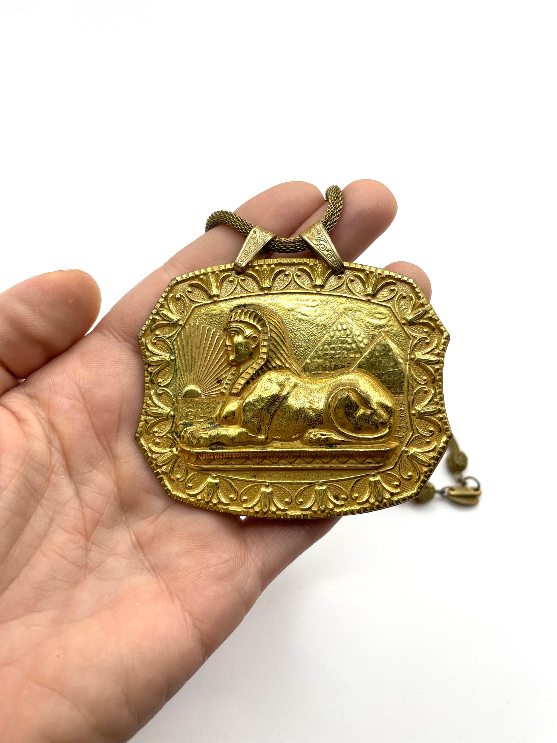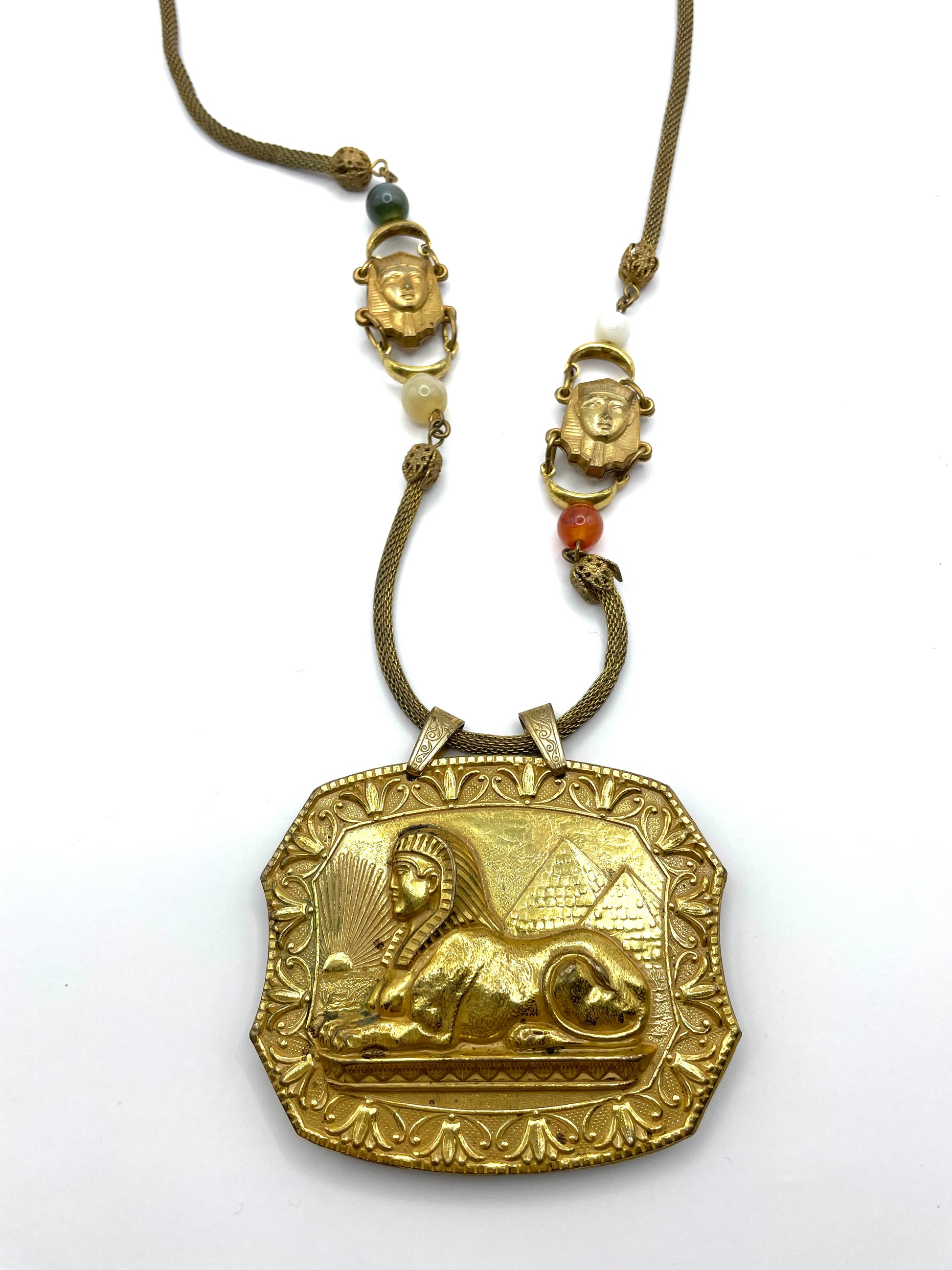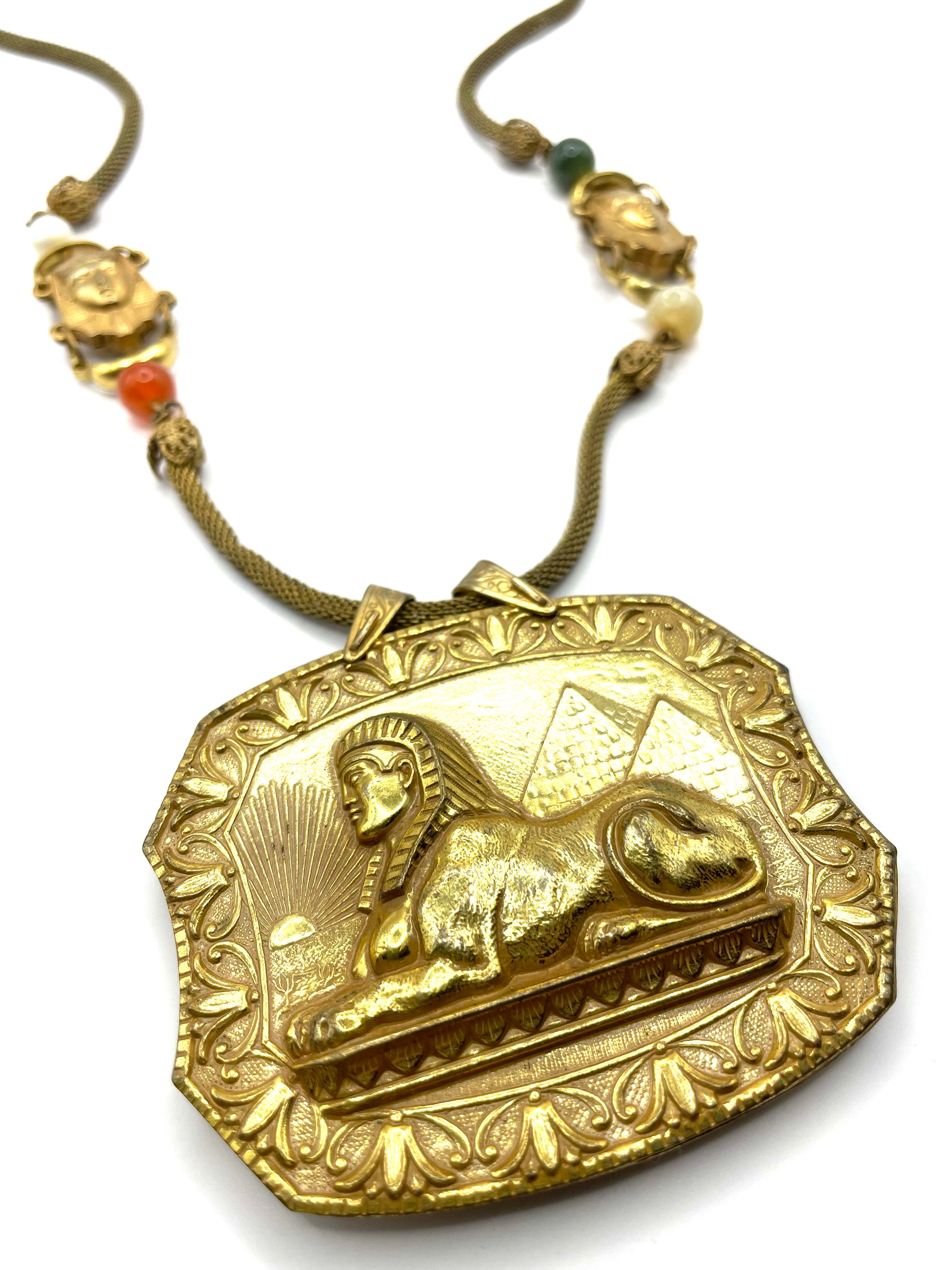 Miriam Haskell Egyptian Revival Sphinx Pharoah Pendant Necklace 1970's