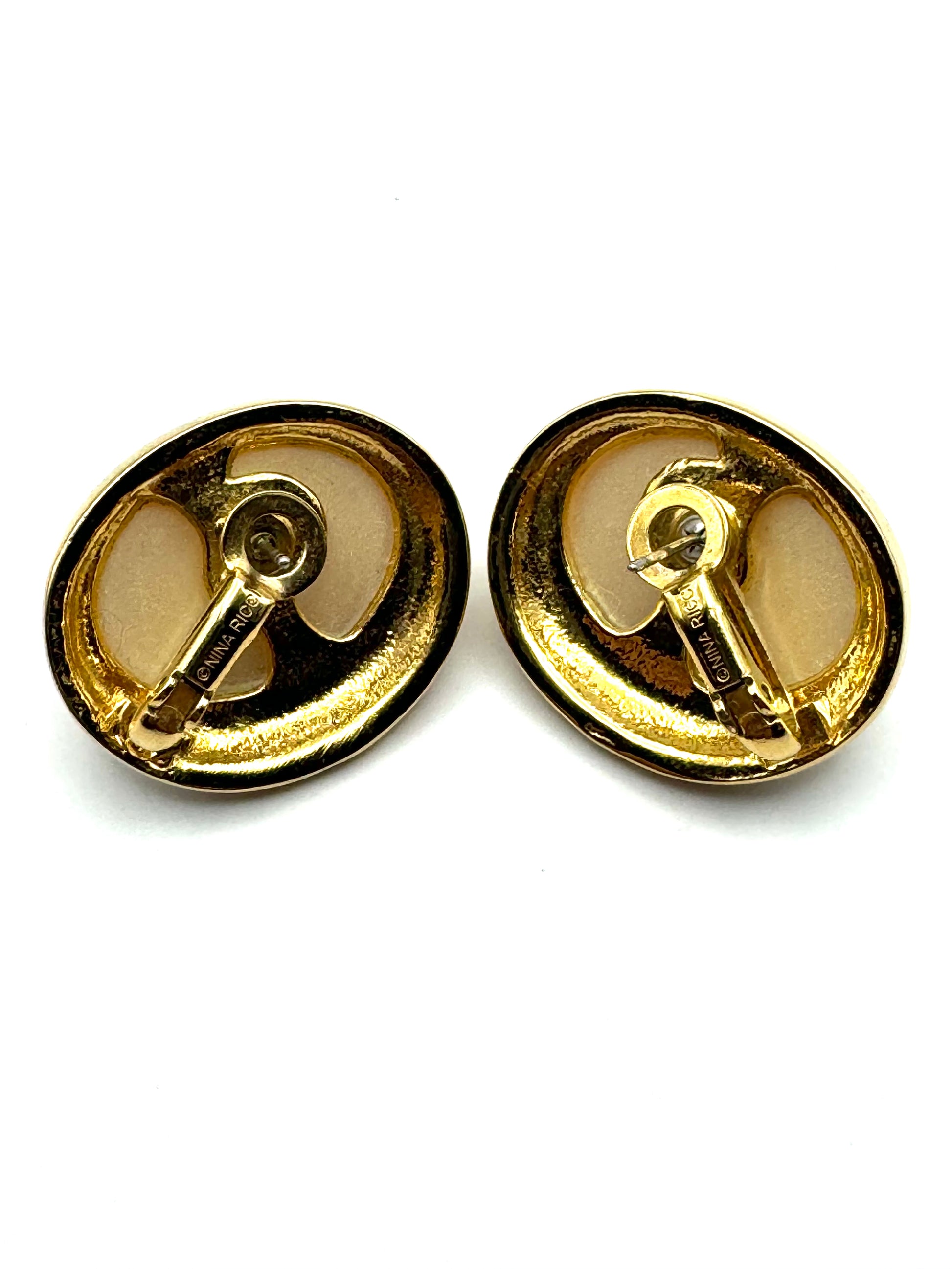 Elegant and timeless, these Nina Ricci Pearl and Crystal Clip-On Earrings beautifully embody the brand’s signature sophistication. Each earring features a lustrous faux pearl at its center, surrounded half side by sparkling, clear crystals set in a gold-plate metal frame. The combination of the classic pearls and shimmering crystals creates a refined yet eye-catching look, perfect for bridal wear or adding a touch of glamour to any special occasion.
