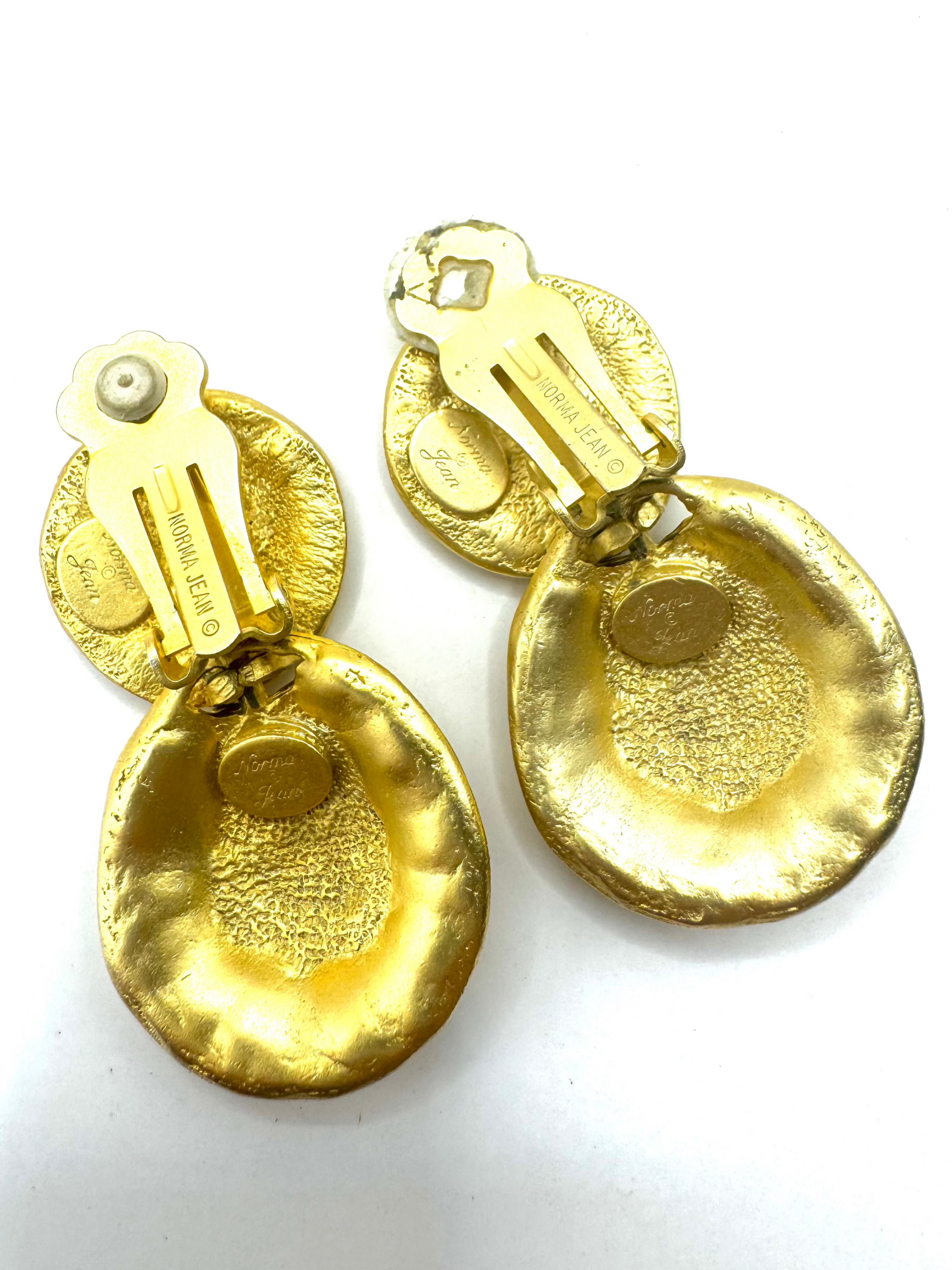 Vintage Signed Norma Jean Drop Dangle Clipon Earrings