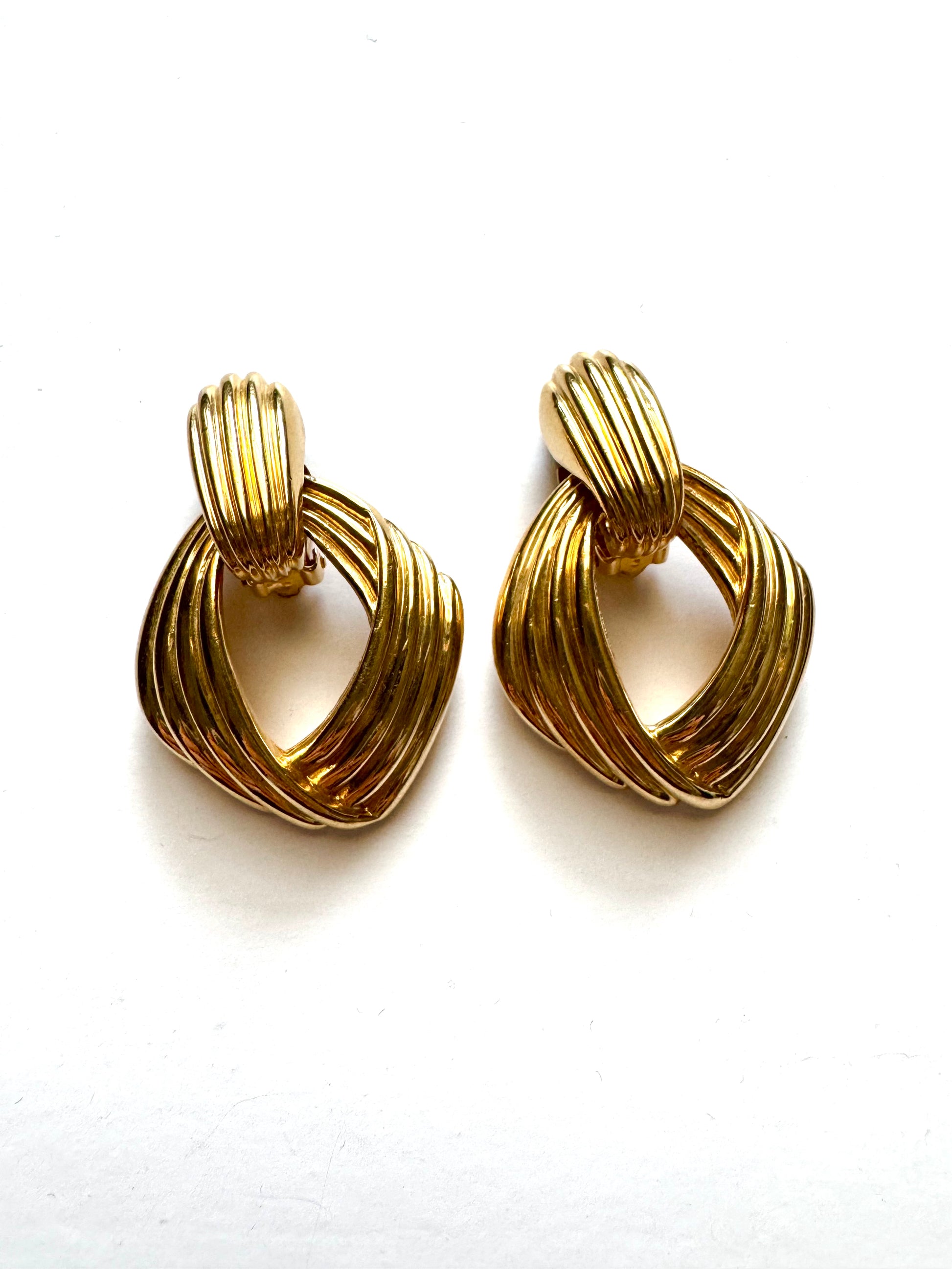 Vintage 1980s Signed Ciner Gold-Tone Dangle Clip-On Earrings
