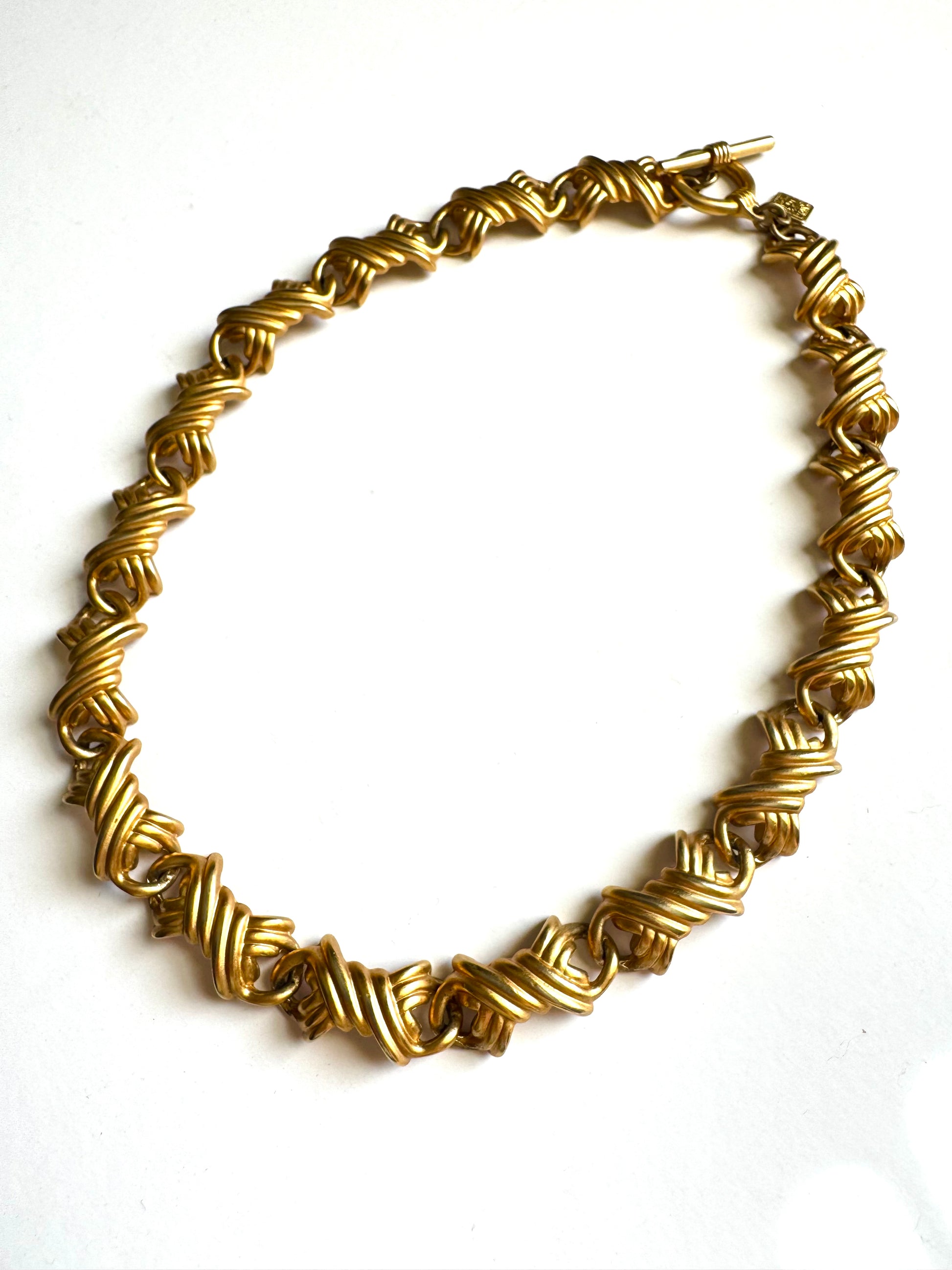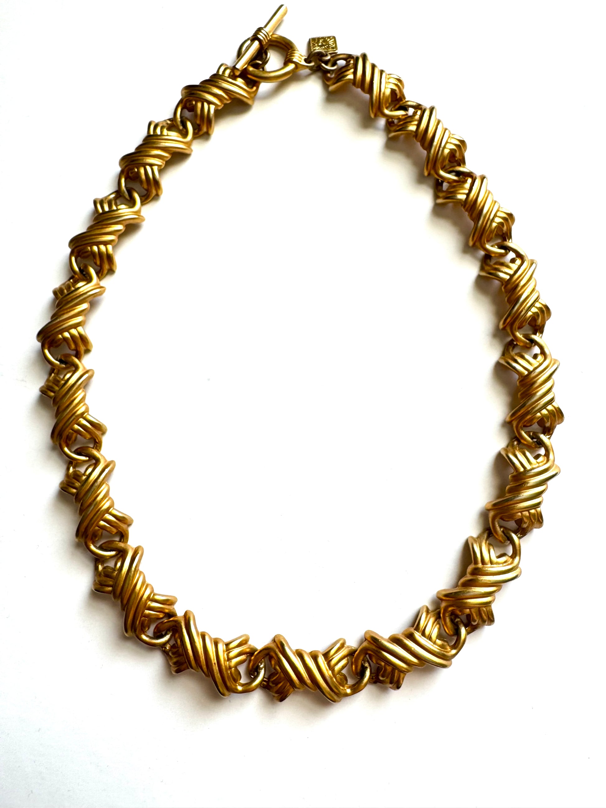 Vintage Anne Klein Brushed Gold Link Necklace with Toggle Clasp