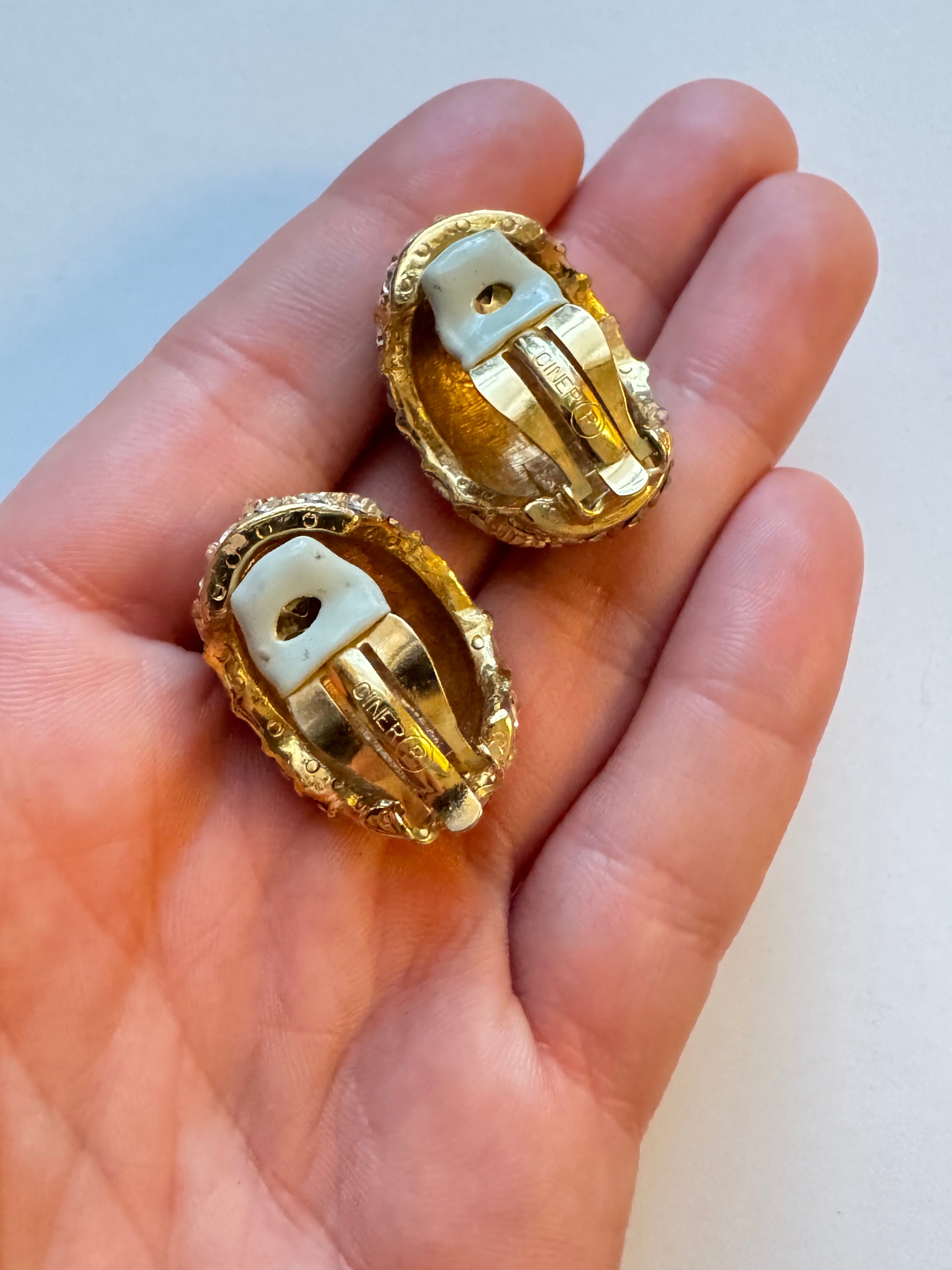 Vintage Ciner Gold Pavé Dome Clip-On Earrings