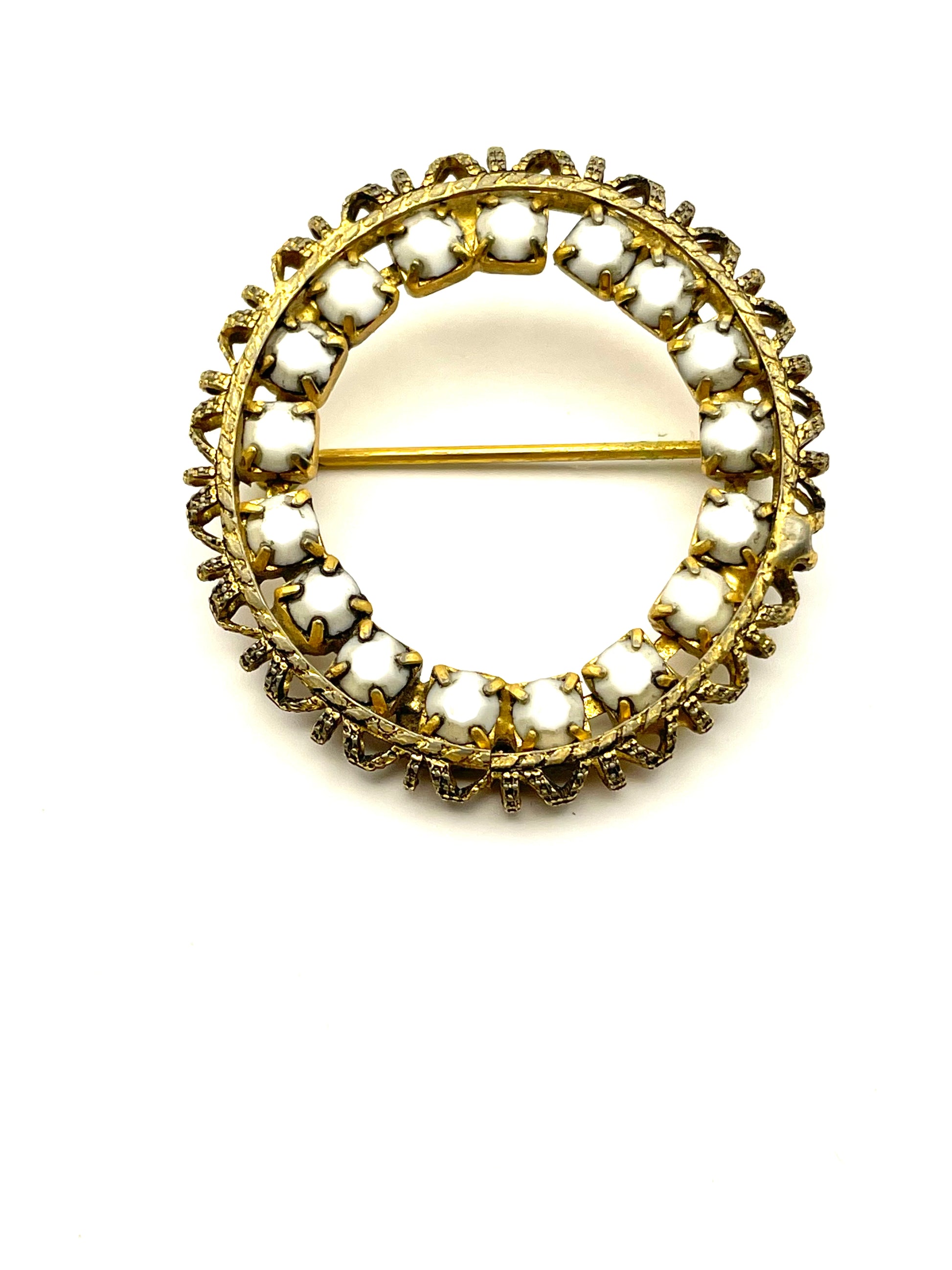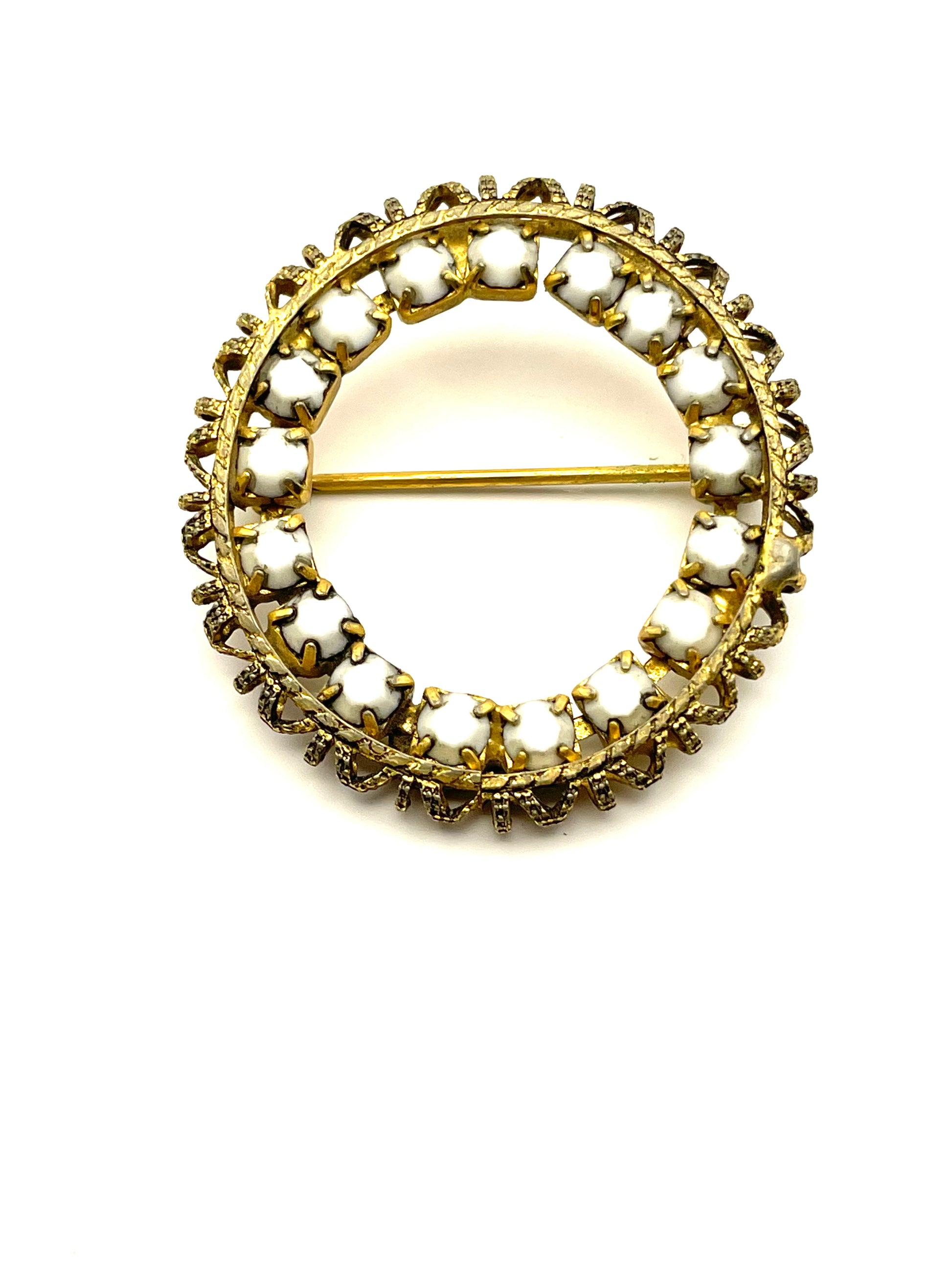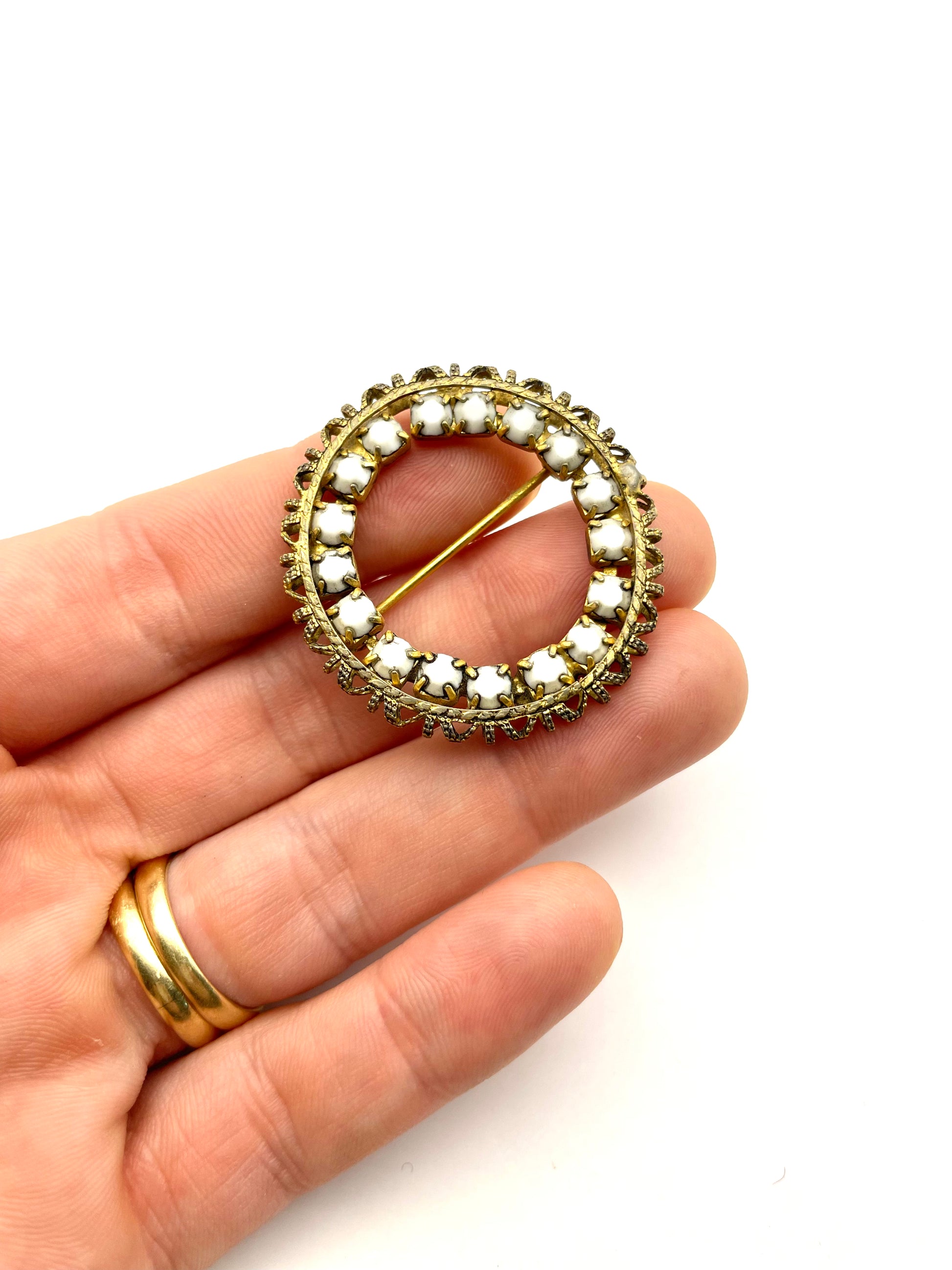 Vintage Freirick Open Circle Milk Glass Brooch 1950s