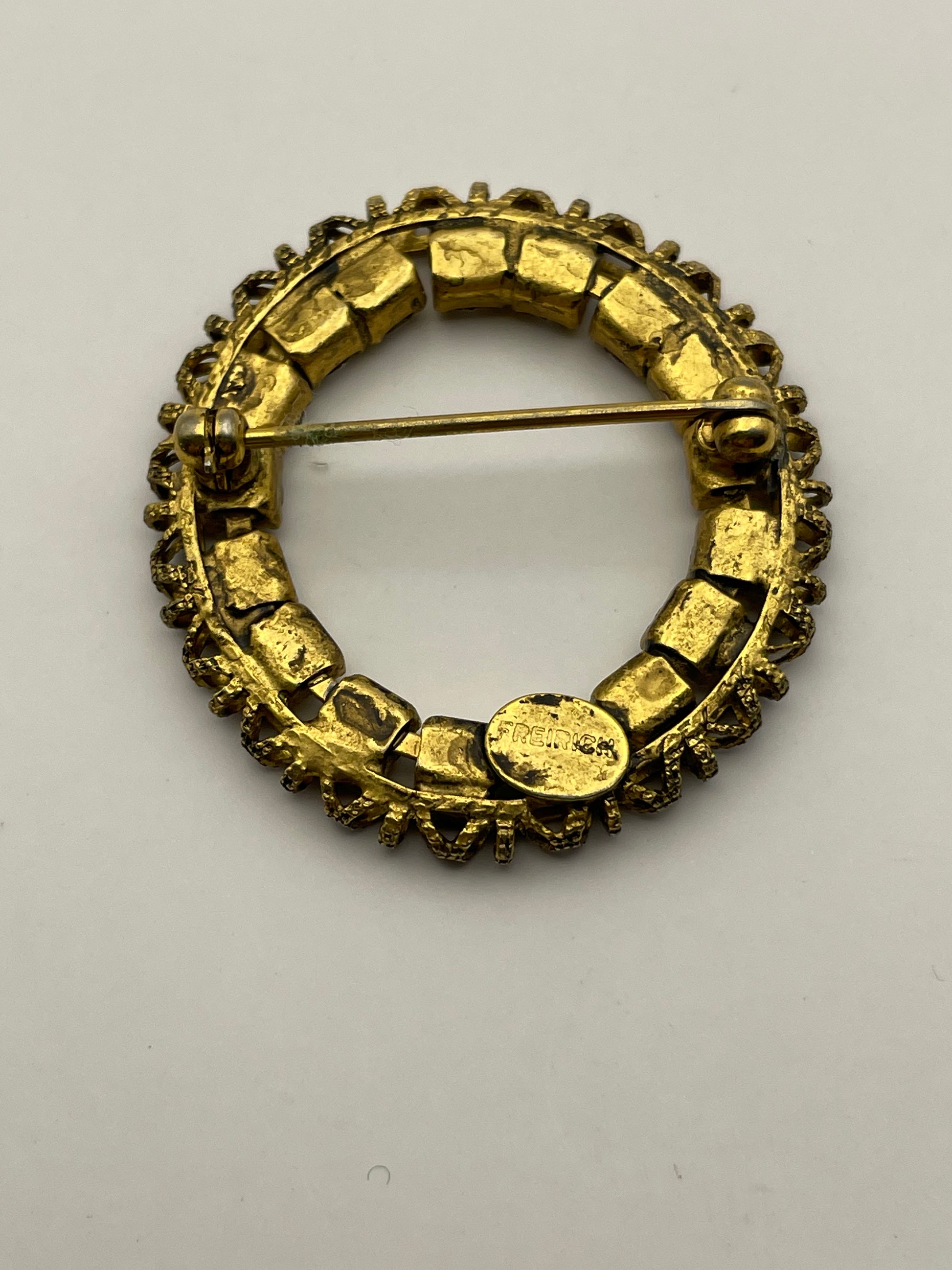 Vintage late 1950s, must be hand aligned, milk glass gold-tone signed Freirick.
