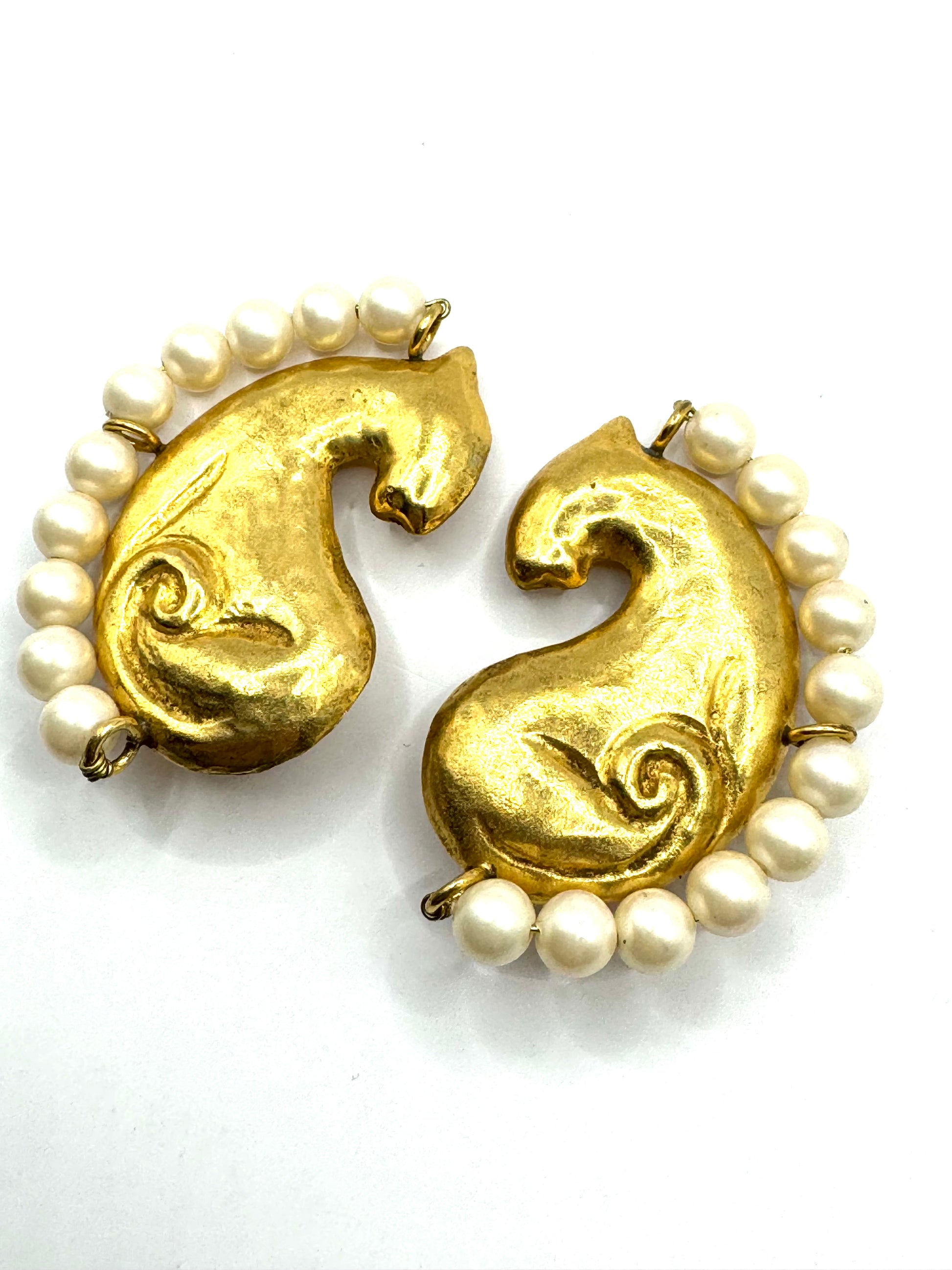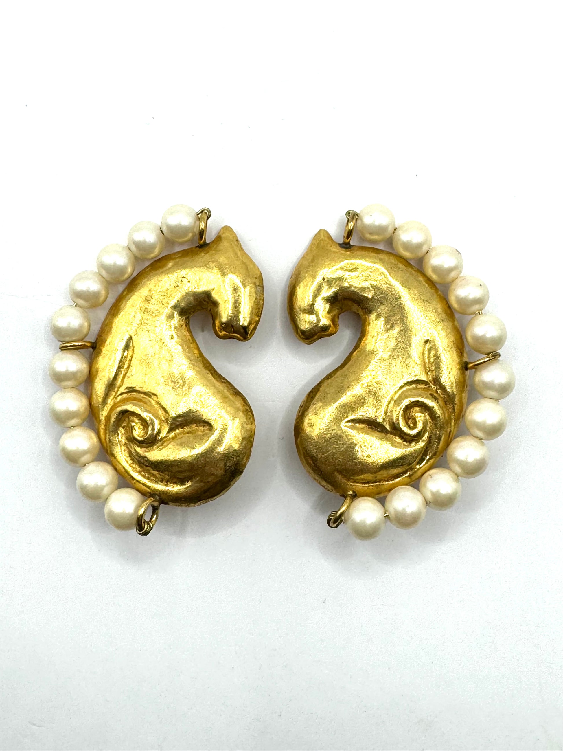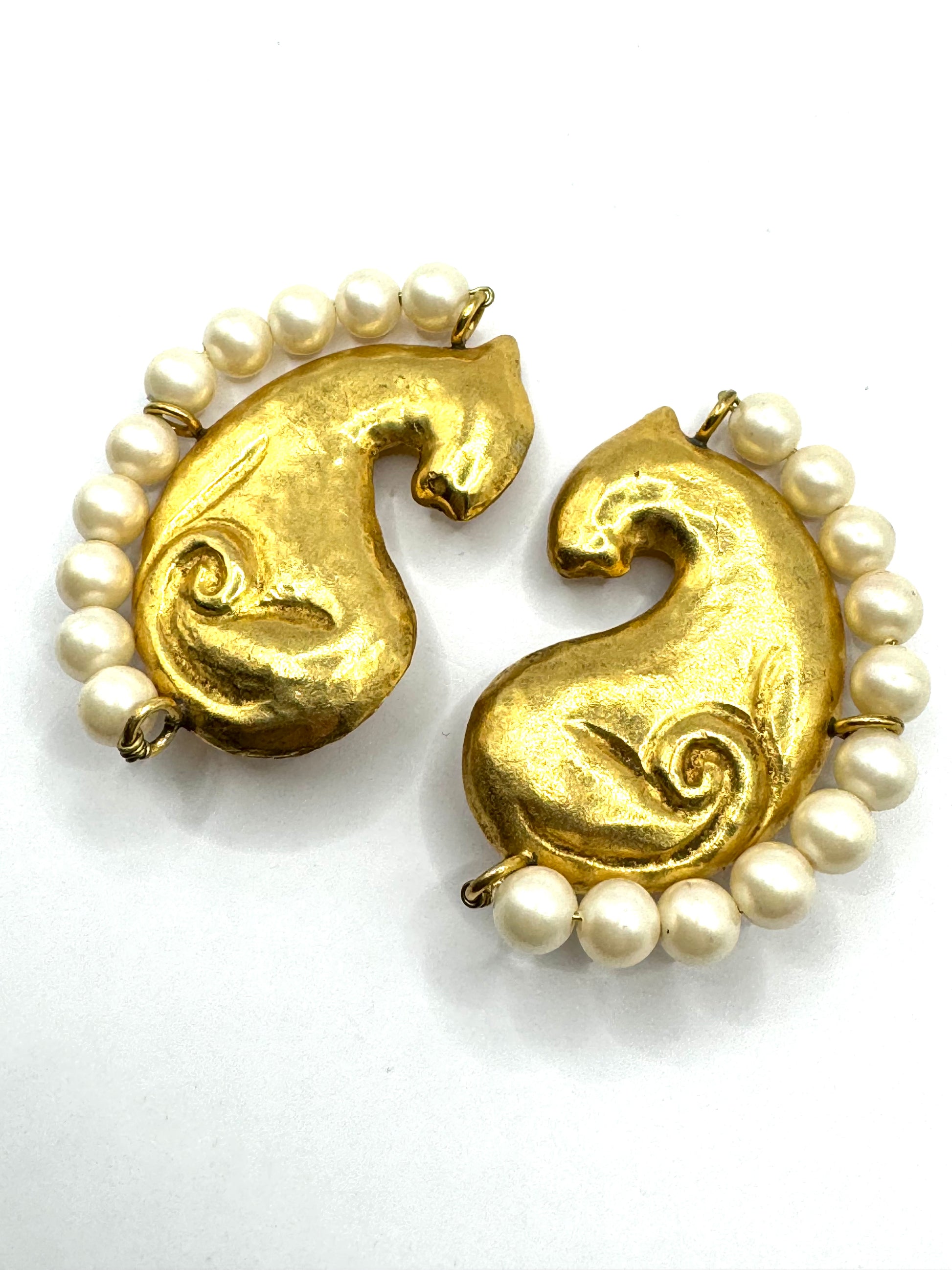 Vintage Jacques An Lanh Paris Clipon Gold Tone Lioness Earrings