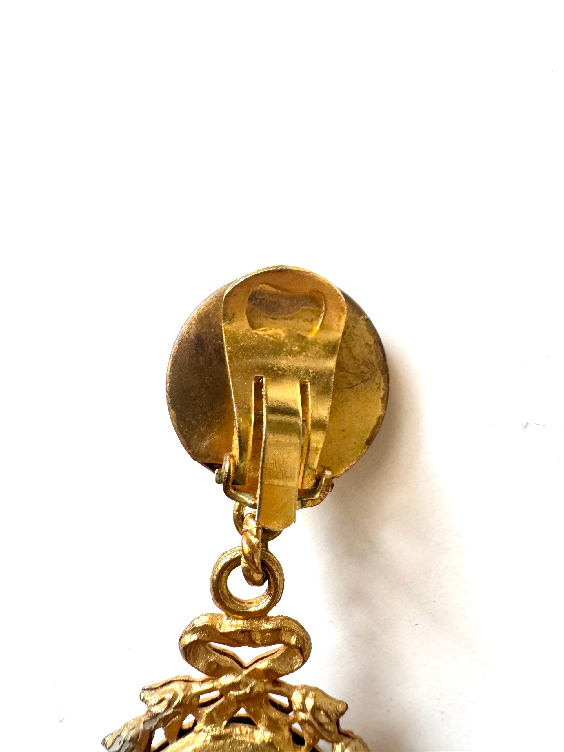 Condition: There is a micro chip on the corner of one glass stone, but it is extremely hard to notice unless closely inspected. Please refer to the photos for detailed views. Overall, the earrings remain in beautiful vintage condition.