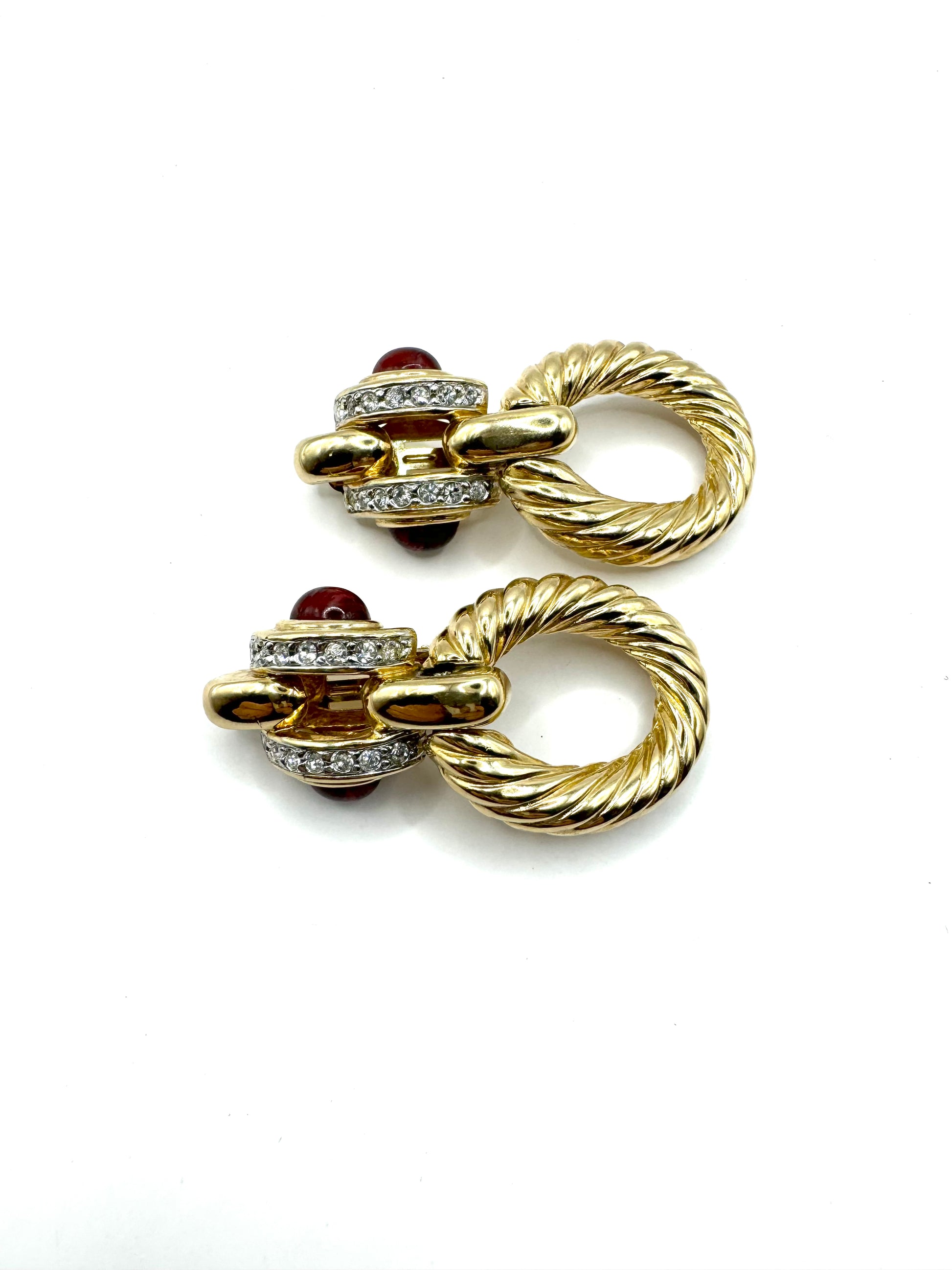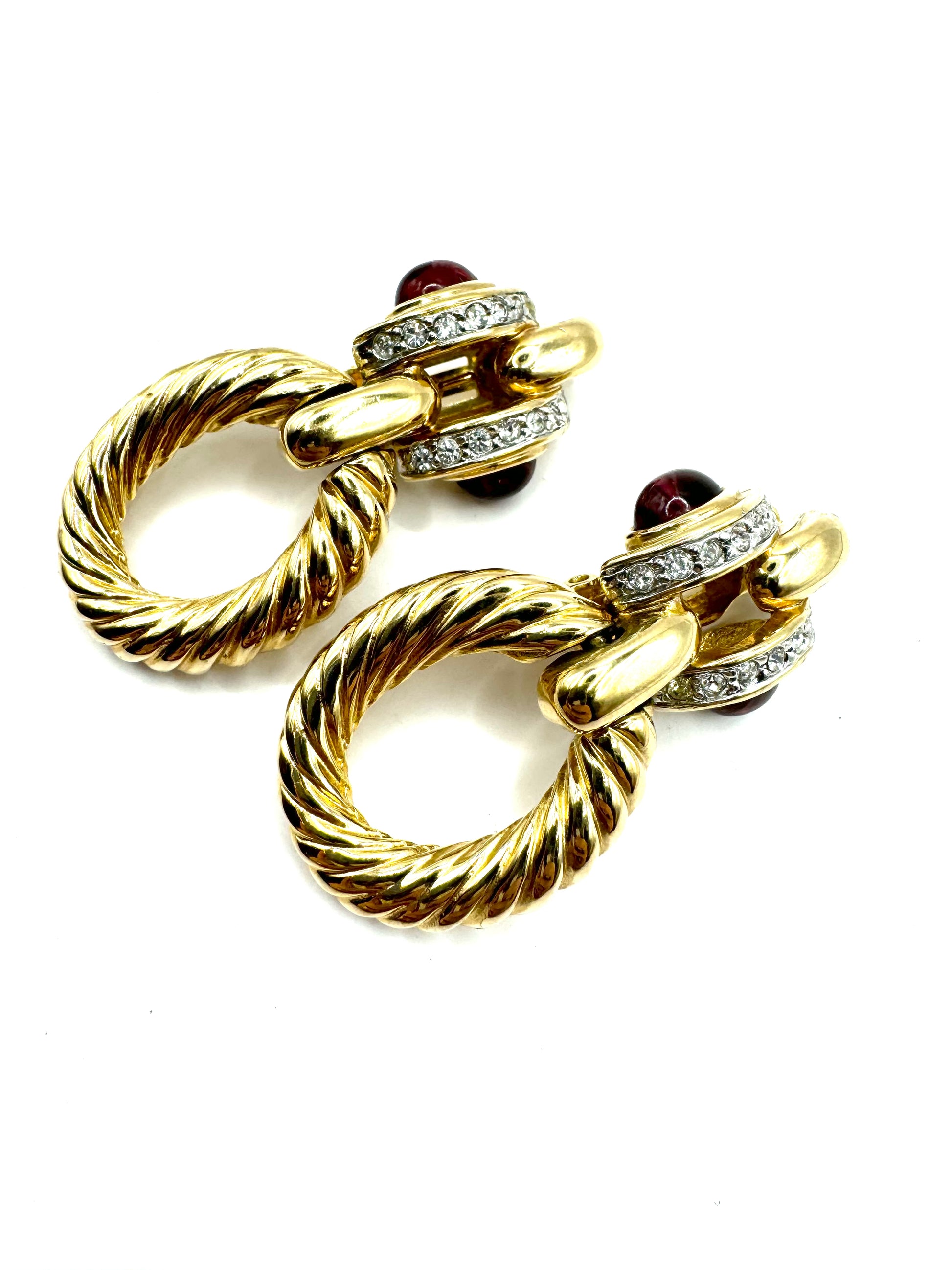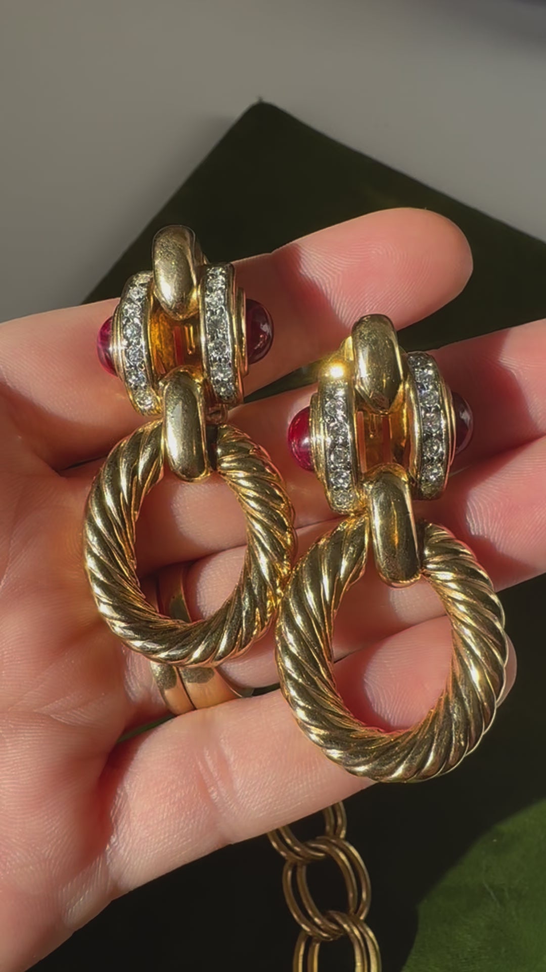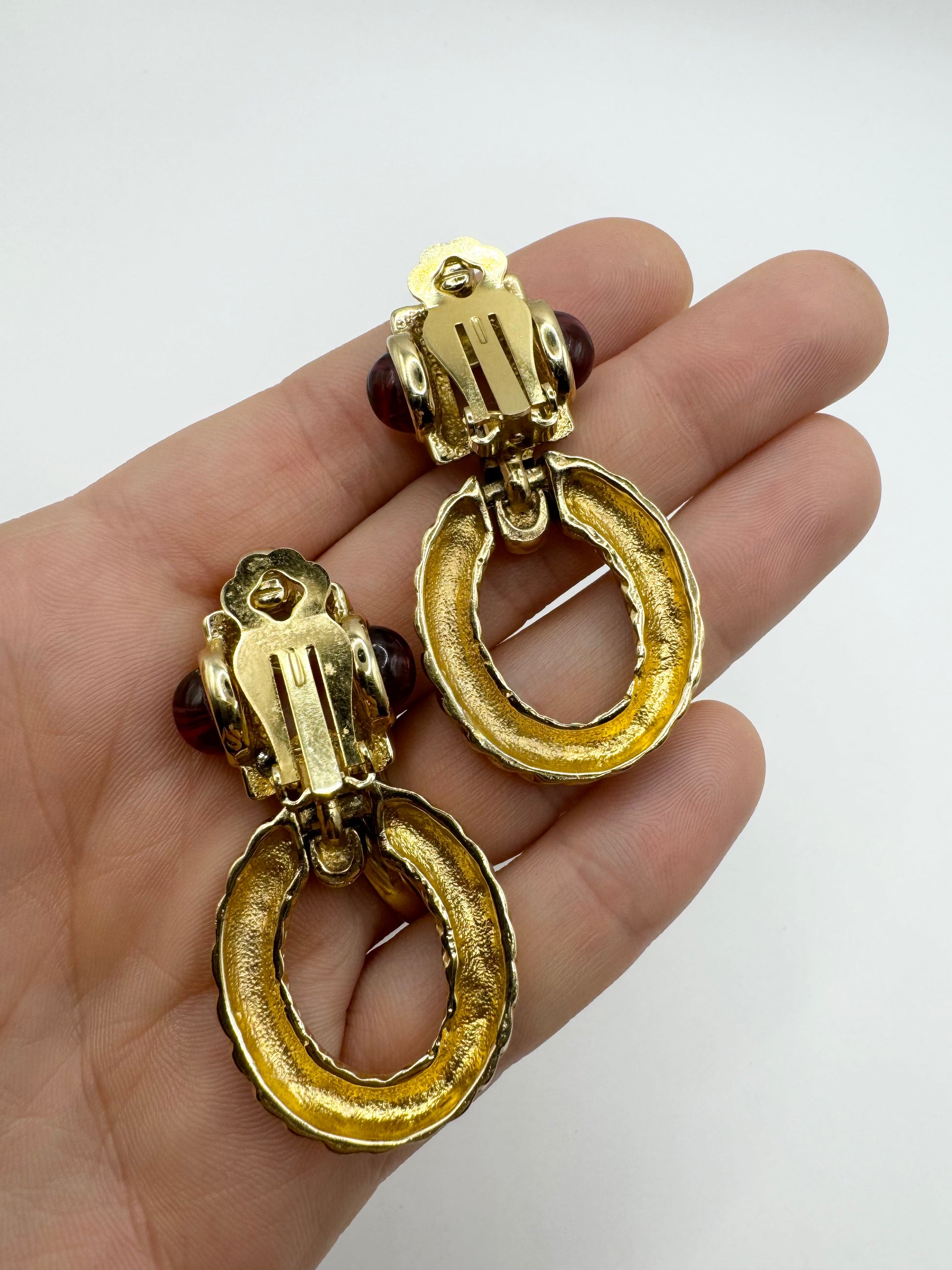 Vintage Mogul Glass Rhinestone Twisted Rope Door Knocker Clipon Earrings