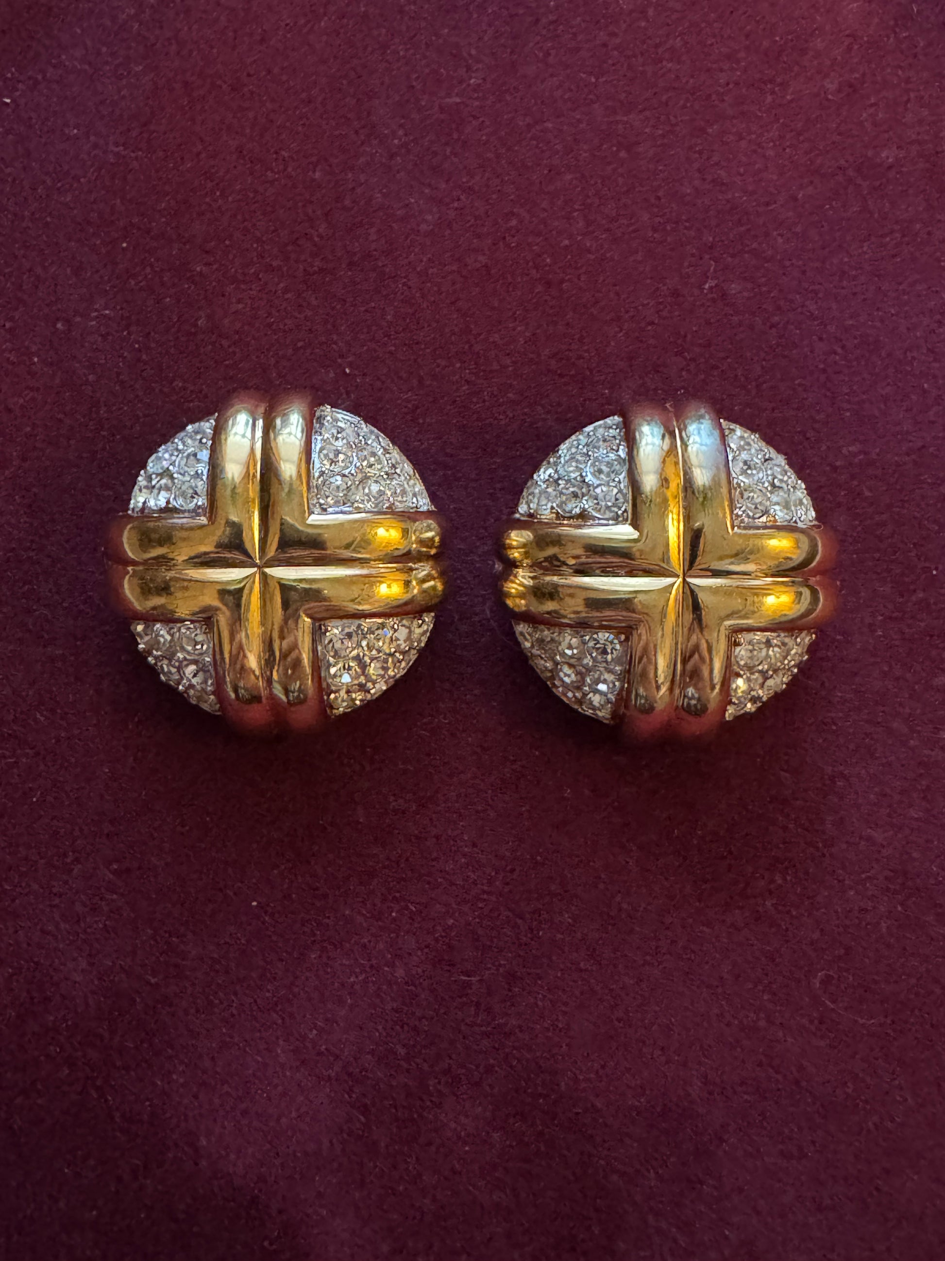 Vintage Nina Ricci Pavé Gold Cross Clip-On Earrings