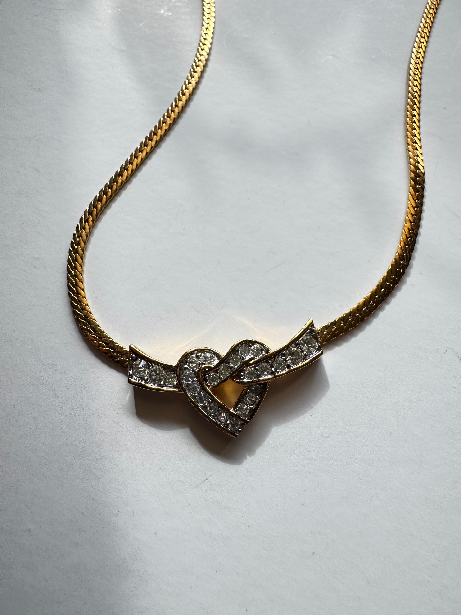 Vintage Nina Ricci Rhinestone Heart Necklace