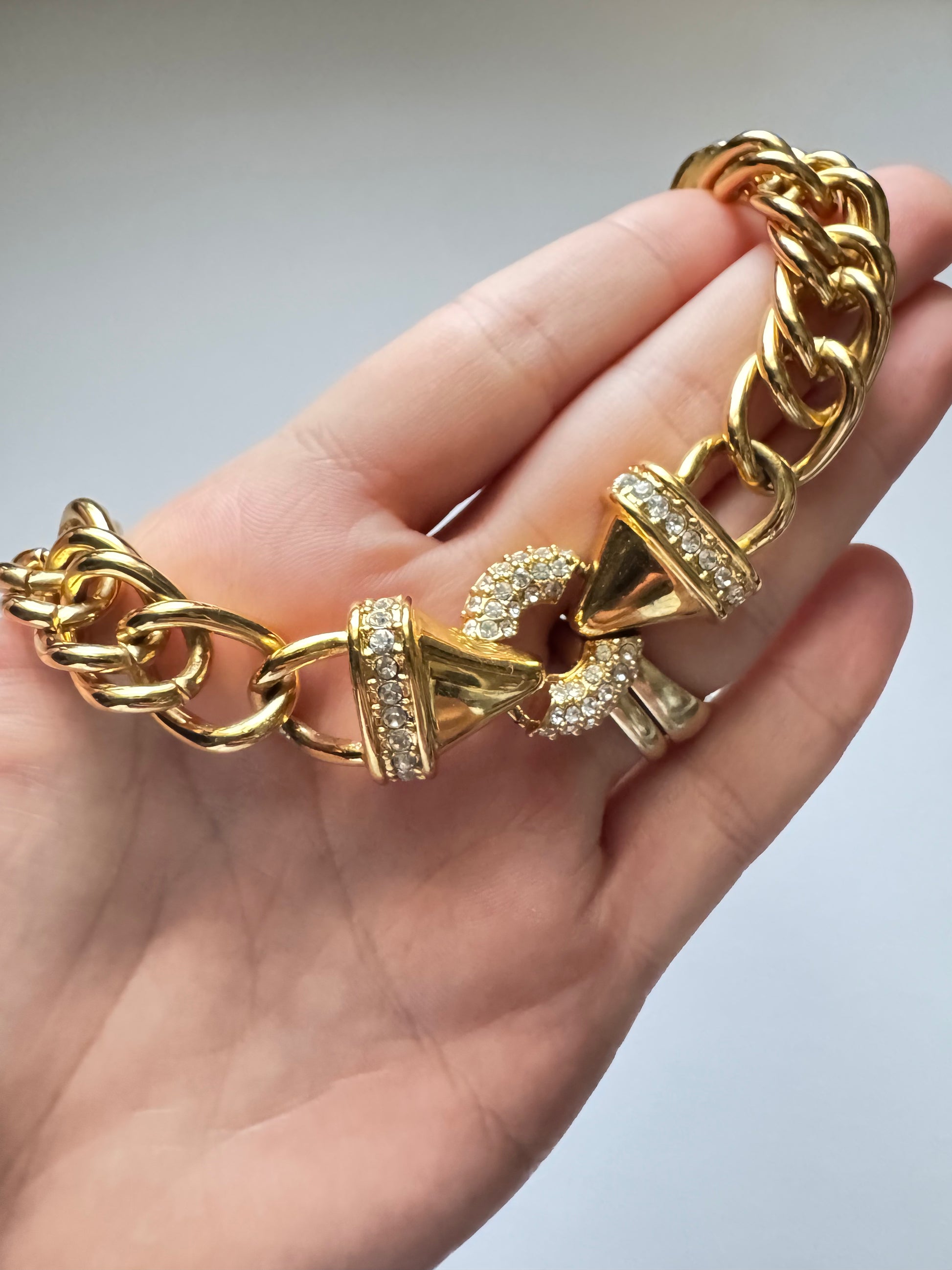 Vintage Nolan Miller Gold-Tone Statement Necklace with Pave Front Clasp