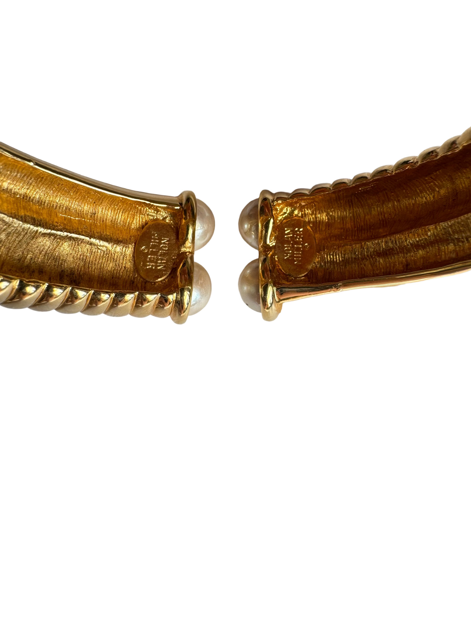 Vintage Nolan Miller Pearl & Crystal Hinged Cuff Bracelet