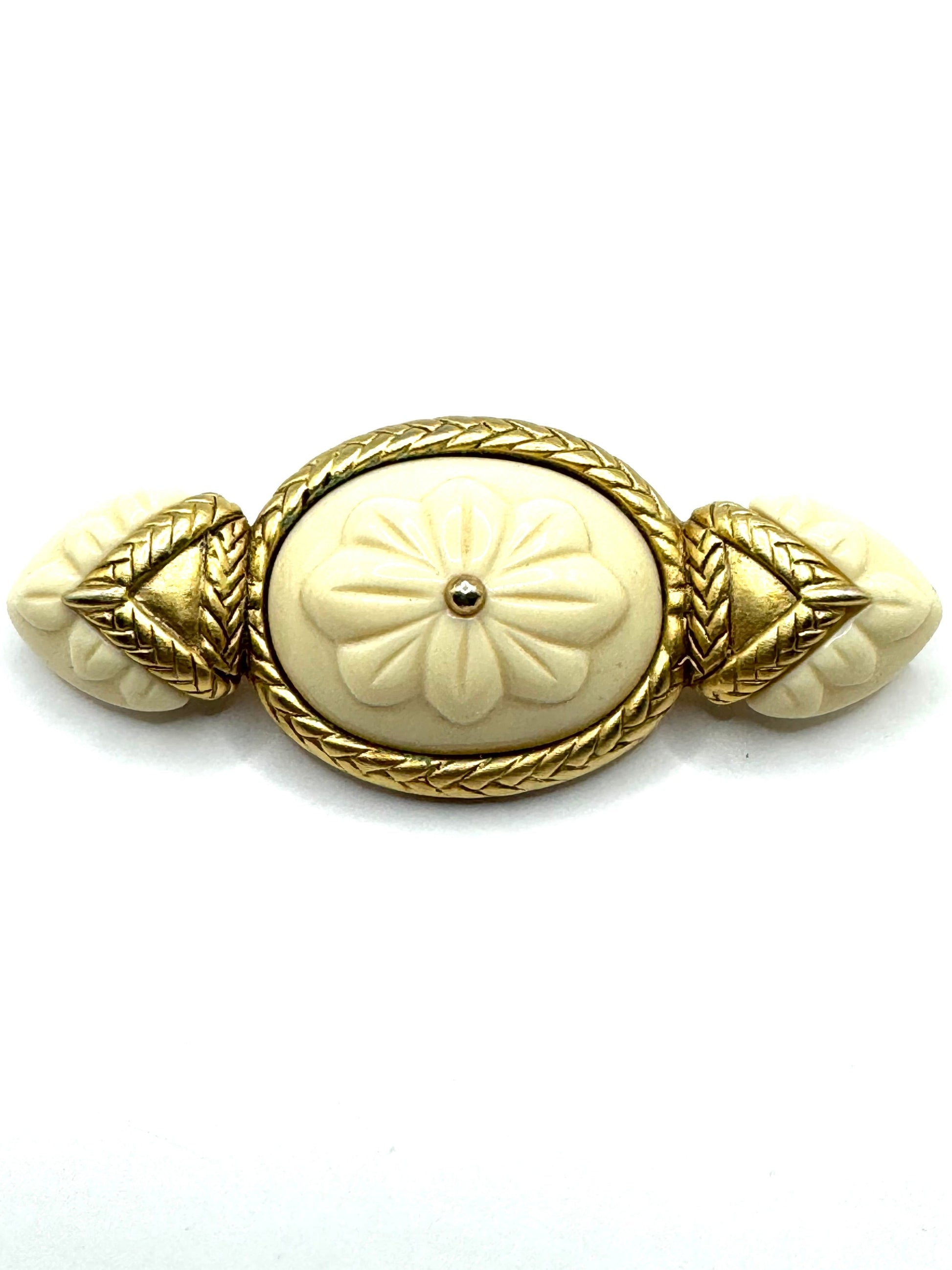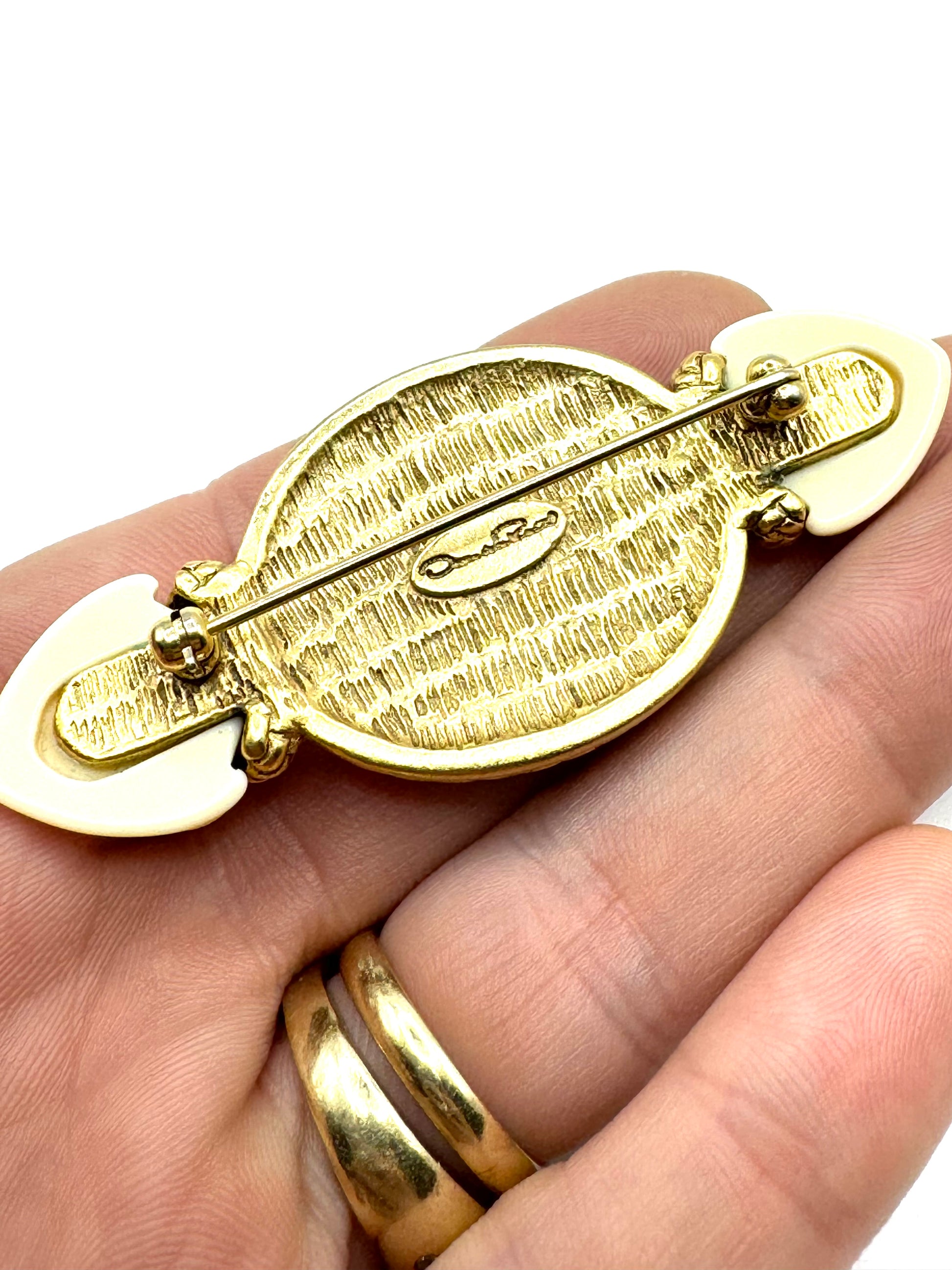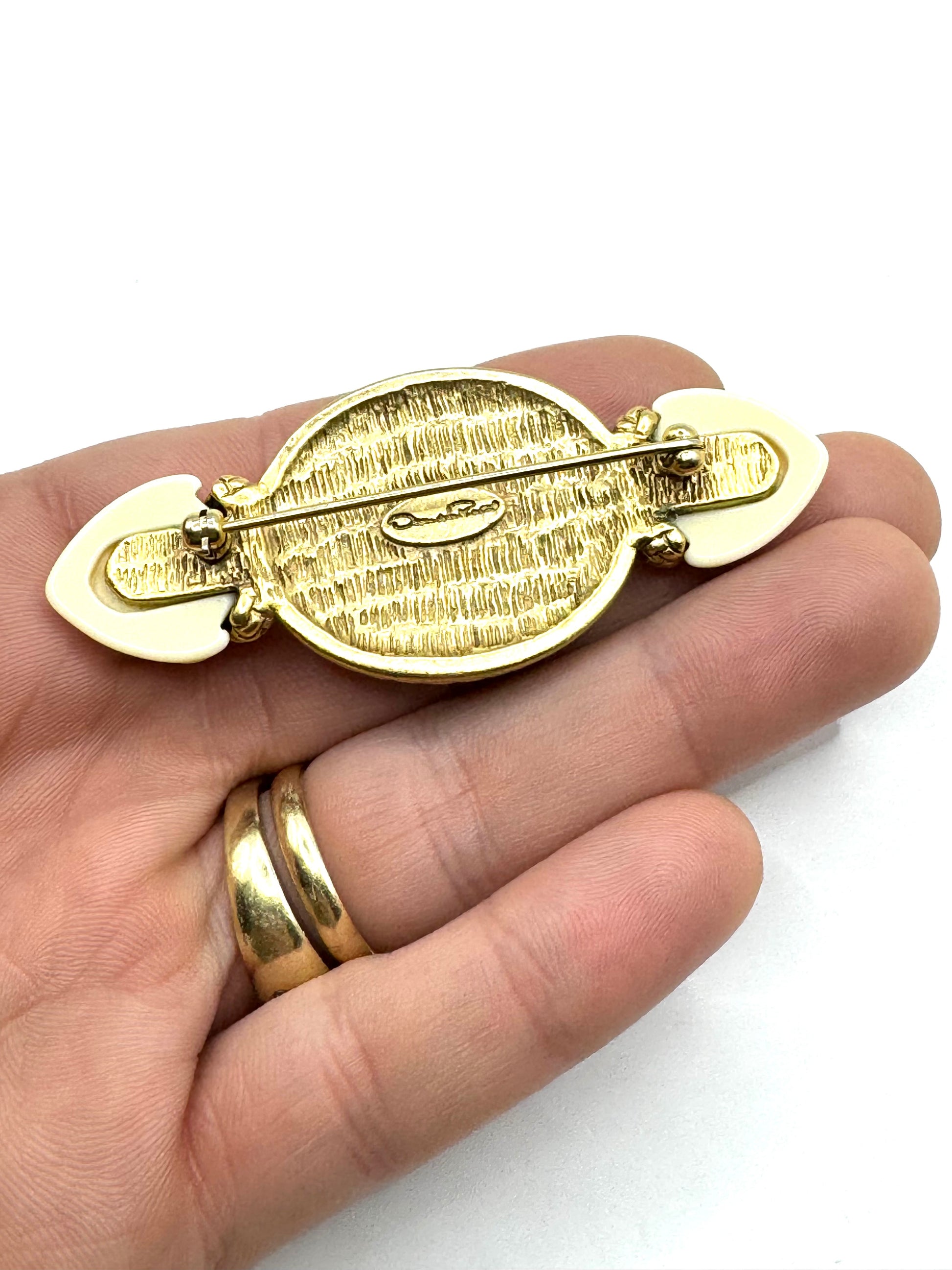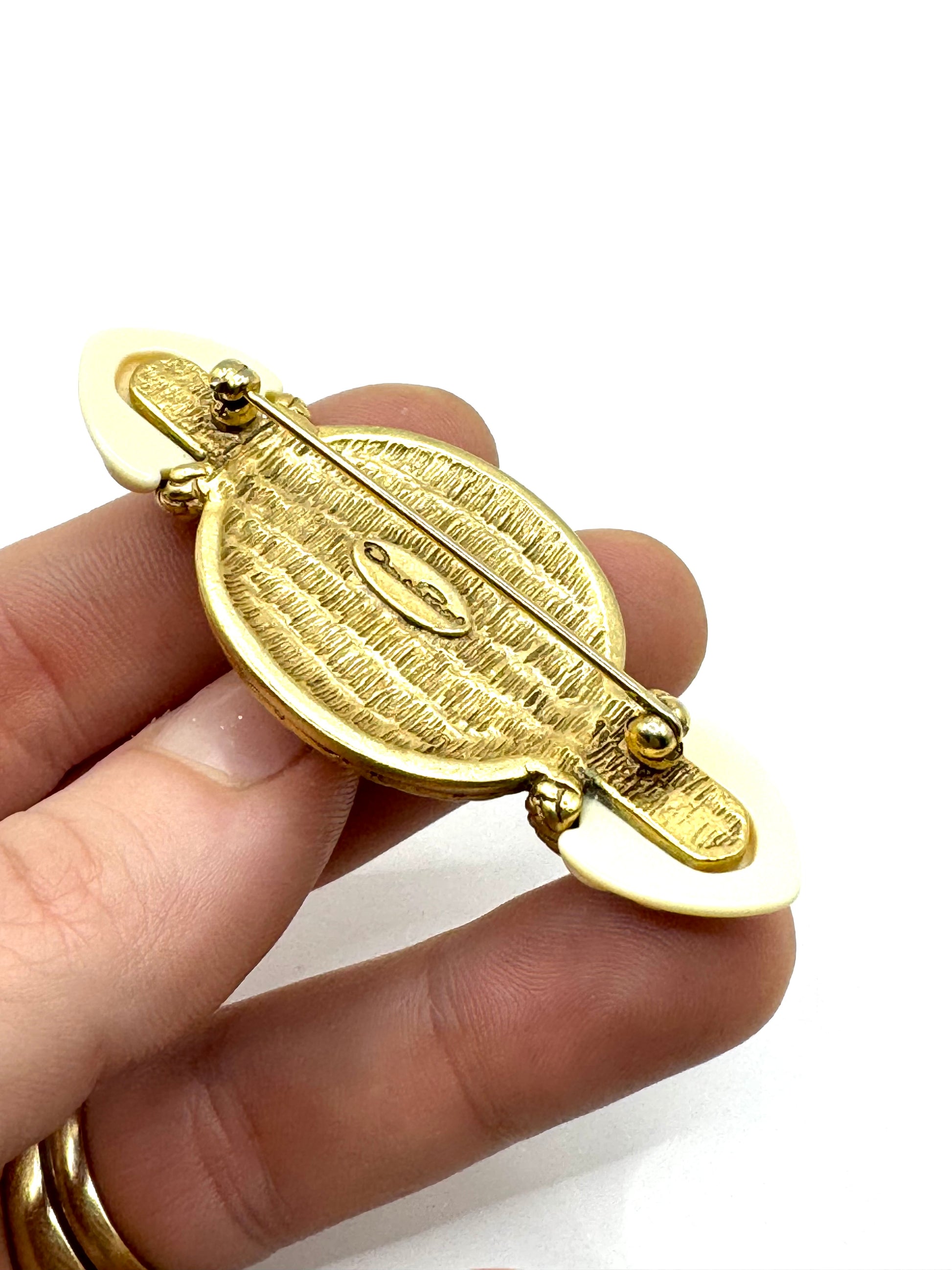 You are looking at this wonderful brooch by Oscar de la Renta. If you want an elegant touch on your coat, jacket, shirt or sweater, don't miss out on this timeless piece. Moreover, it's quite a rare item. With a width of 2 3/4 inches, this exquisite piece will add sophistication wherever it is worn. It is in perfect condition.
